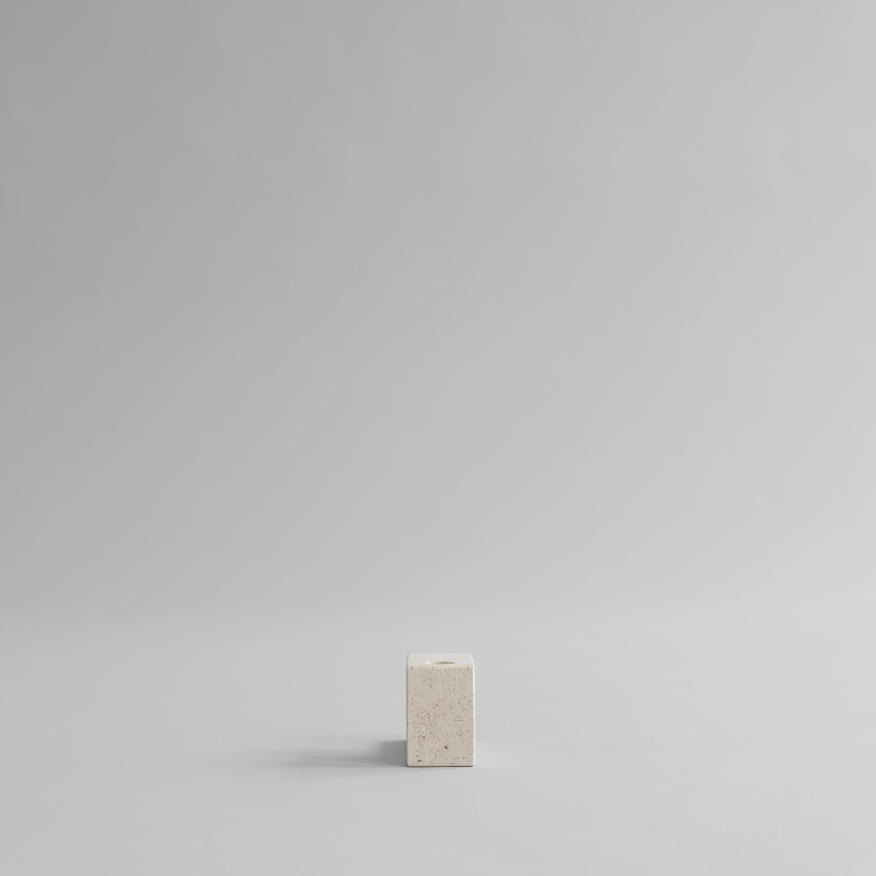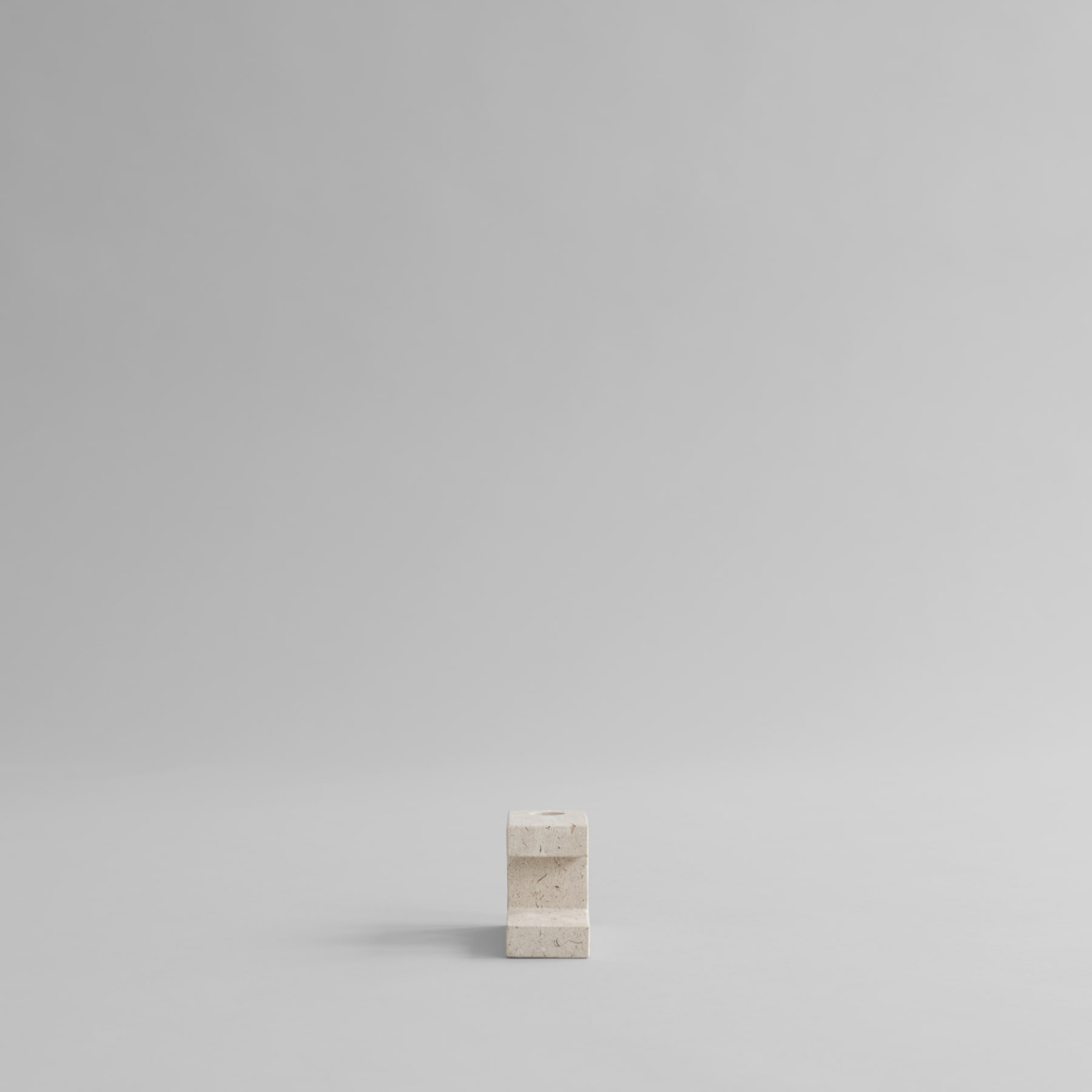 Inspired by architectural building components, the Brick Candle Holder is made of exquisite solid limestone from Egypt, elegantly carved in sharp geometric shapes. Each candle holder is completely unique, emphasizing the rich and beautiful patterns of natural stone. The polished surface softly reflects the light from the candle, adding a warmth to the Brick Candle Holders. Brick comes in two shapes and sizes, complementing each other in an architectural composition or stand alone as sculptural object. Designed by Kristian Sofus Hansen & Tommy HyldahlWe do not recommend burning candles closer than 3 cm from the candleholder.