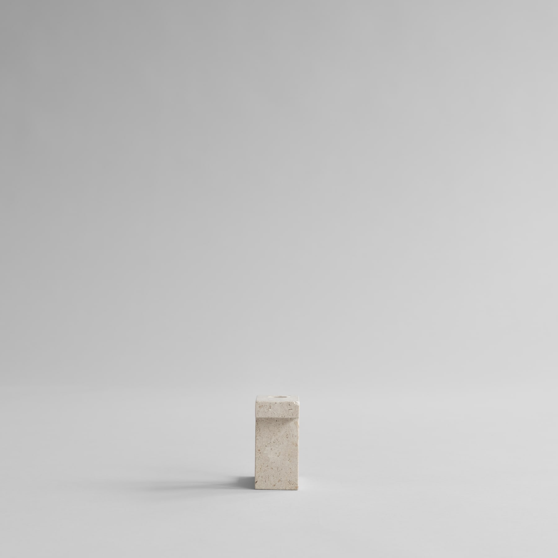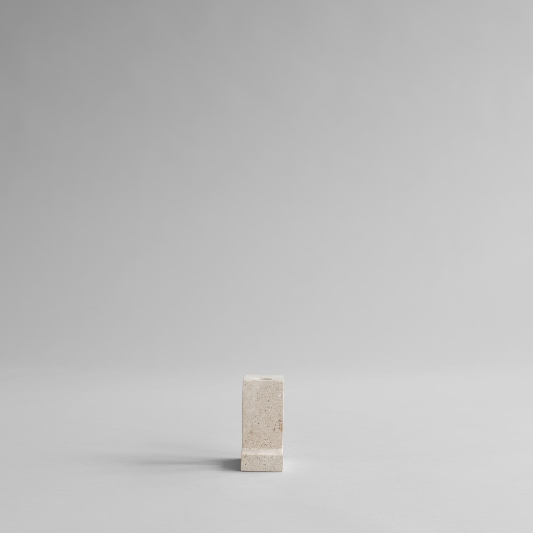 Inspired by architectural building components, the Brick Candle Holder is made of exquisite solid limestone from Egypt, elegantly carved in sharp geometric shapes. Each candle holder is completely unique, emphasizing the rich and beautiful patterns of natural stone. The polished surface softly reflects the light from the candle, adding a warmth to the Brick Candle Holders. Brick comes in two shapes and sizes, complementing each other in an architectural composition or stand alone as sculptural object. Designed by Kristian Sofus Hansen & Tommy Hyldahl We do not recommend burning candles closer than 3 cm from the candleholder.