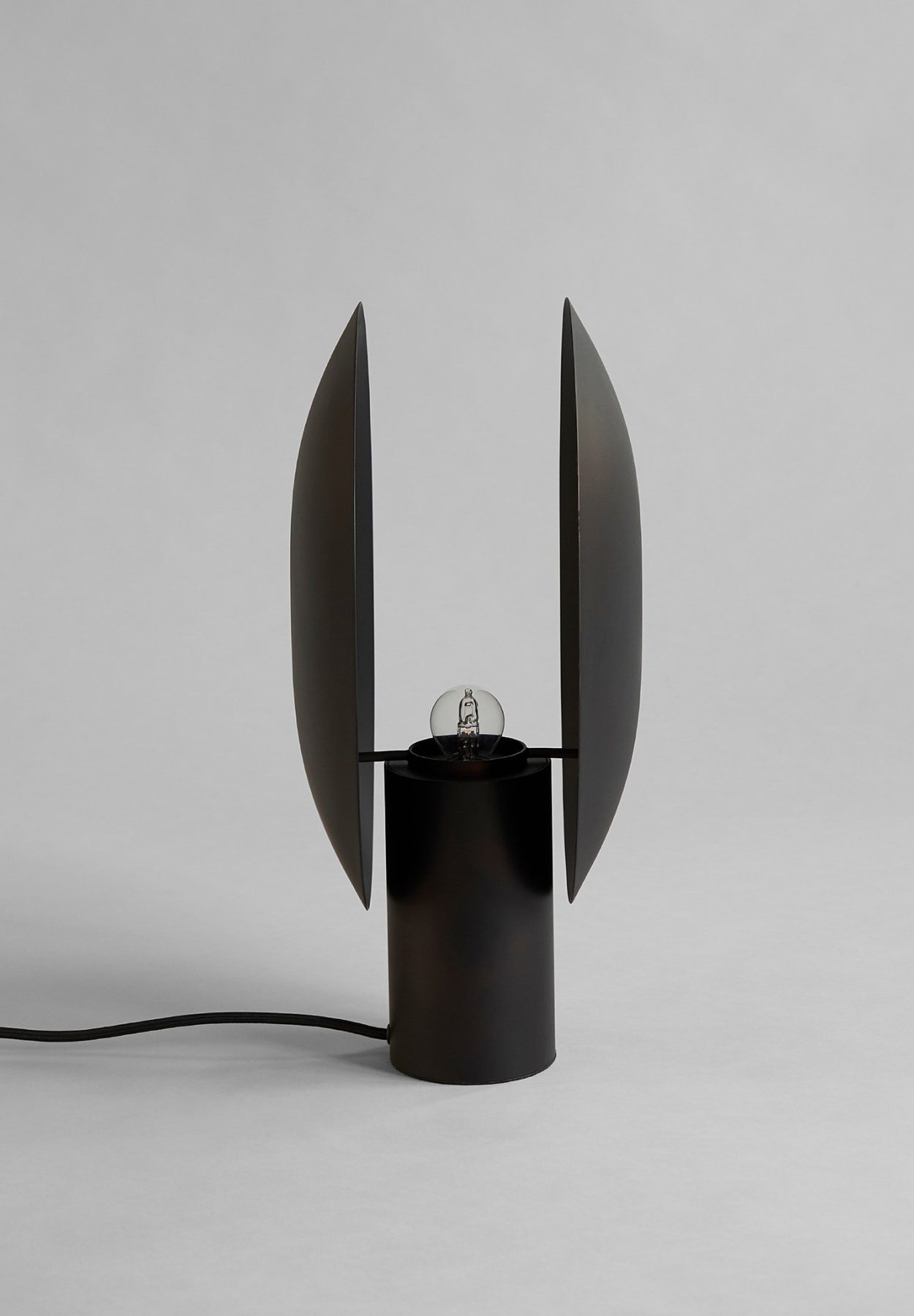 The Clam series consists of a table and a wall lamp characterized by its two opposing shades playing with direct and indirect lighting. In a very Japanese inspired manner, the minimalist lamp smoothly reflects the light to both sides of the gently curved metal screens. The lamp is beautifully crafted in oxidized, plated, and subsequent hand brushed metal. Designed by Kristian Sofus Hansen & Tommy Hyldahl.Recommended 101 Cph Light Source: Pygmy – Matt Porcelain – E14View assembly guide here.