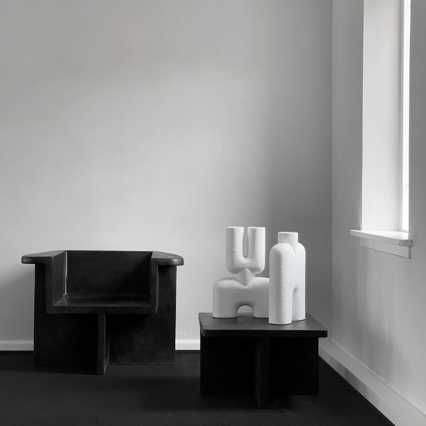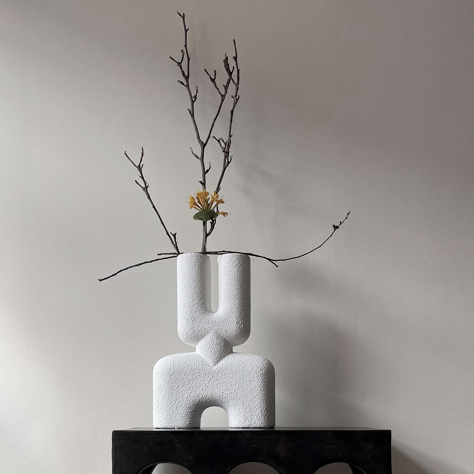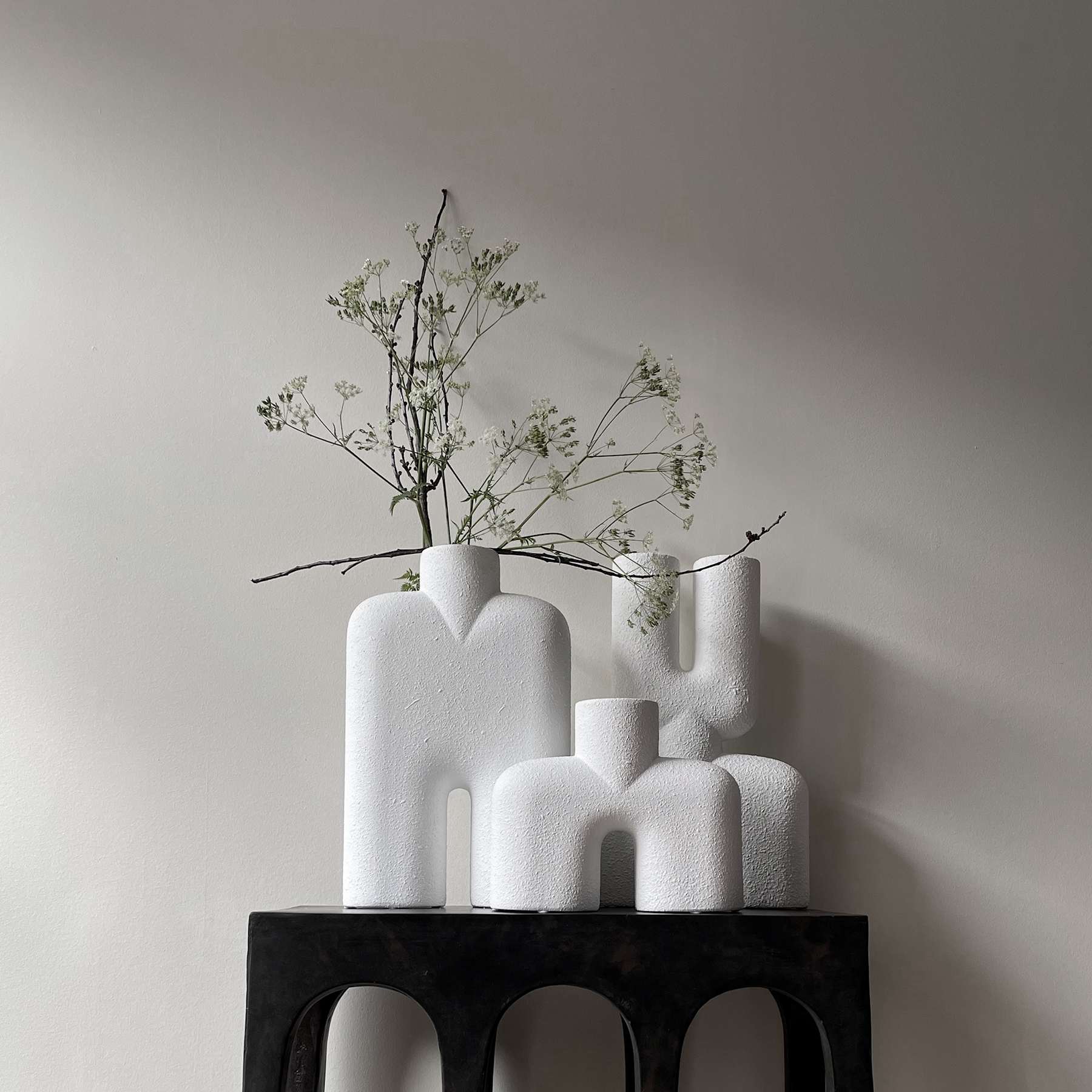 A tribute to the Cobra Arts Movement of the 1960s, the collection is the epitome of quirky vases that will add joy to any interior setting. Think whimsical, soft and organic shapes unmistakably reminiscent of human silhouettes and curves. True to the Cobra artists way of working, the series takes its starting point in naive hand sketches leading to bodily silhouettes. As it is a hand glazed natural product, the colours may vary slightly and while it is not 100% waterproof, a bag for fresh flowers is included. Designed by Kristian Sofus Hansen & Tommy Hyldahl.