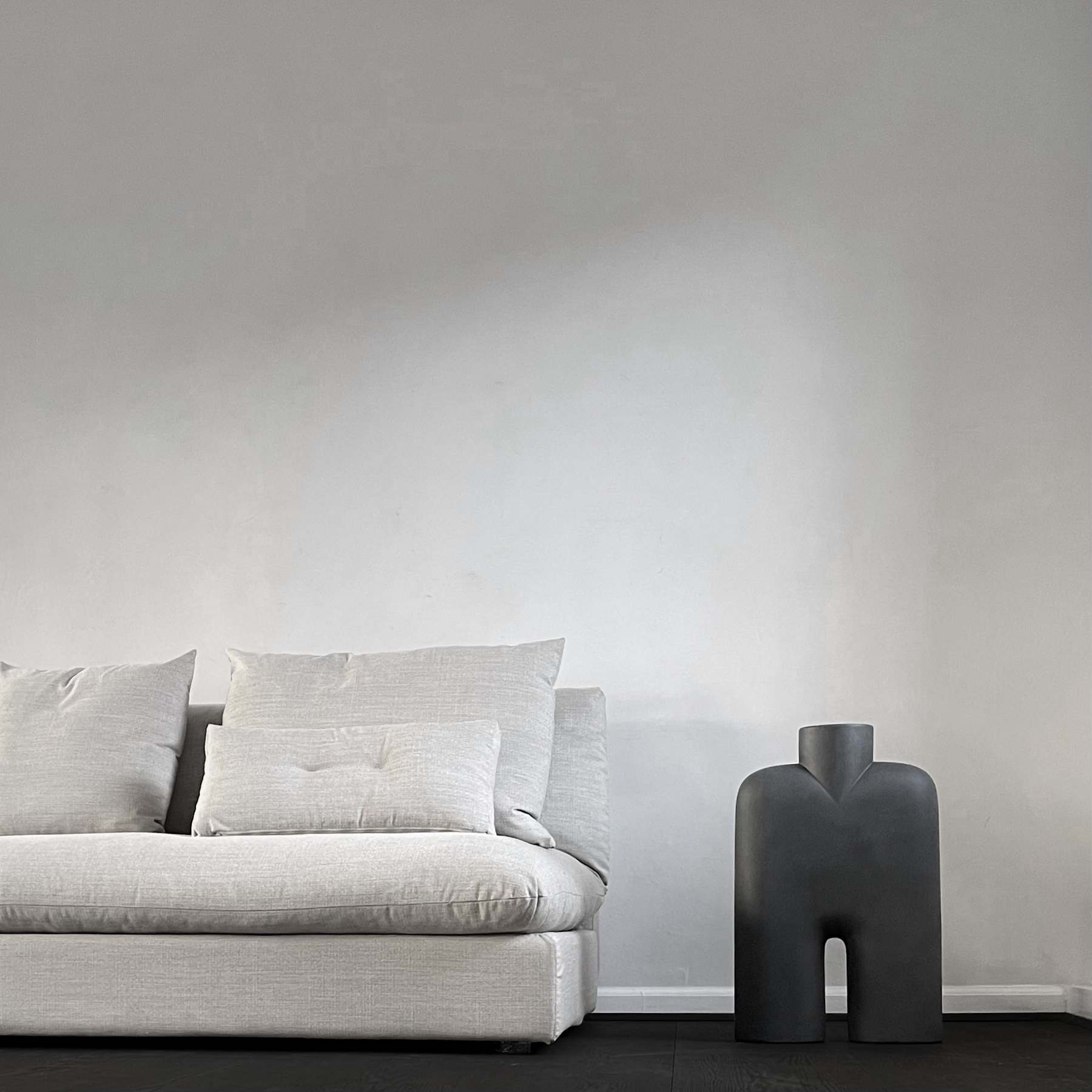 A tribute to the Cobra Arts Movement of the 1960s, the collection is the epitome of quirky vases that will add joy to any interior setting. Think whimsical, soft and organic shapes unmistakably reminiscent of human silhouettes and curves. True to the Cobra artists way of working, the series takes its starting point in naive hand sketches leading to bodily silhouettes. As it is a hand glazed natural product, the colours may vary slightly and while it is not 100% waterproof, a bag for fresh flowers is included. Designed by Kristian Sofus Hansen & Tommy Hyldahl.