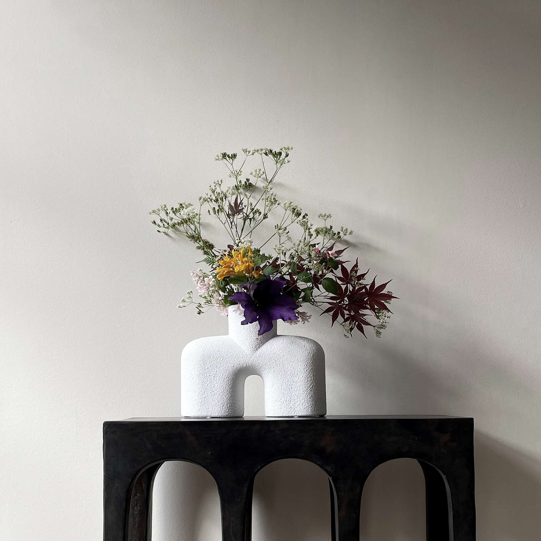 A tribute to the Cobra Arts Movement of the 1960s, the collection is the epitome of quirky vases that will add joy to any interior setting. Think whimsical, soft and organic shapes unmistakably reminiscent of human silhouettes and curves. True to the Cobra artists way of working, the series takes its starting point in naive hand sketches leading to bodily silhouettes. As it is a hand glazed natural product, the colours may vary slightly and while it is not 100% waterproof, a bag for fresh flowers is included. Designed by Kristian Sofus Hansen & Tommy Hyldahl.