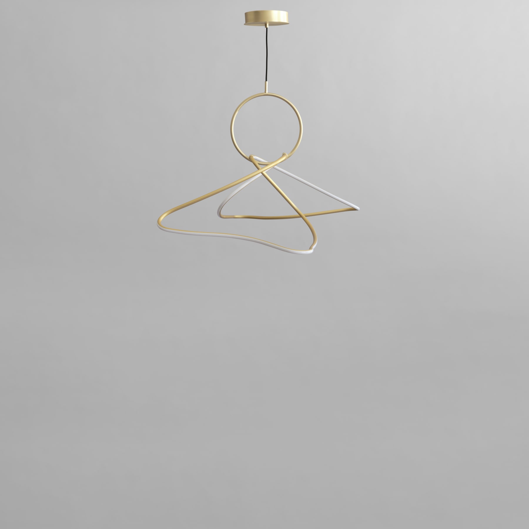 Kumo, meaning clouds in Japanese, is all about organic shapes unfolding above you. Created from brass plated metal pipes with fitted acrylic tubes, the light diffuses a warm ambience through the space. Bended in various sharp angles, Kumo pushes the boundaries of lighting design with its bold organic shape, becoming the lamps signature. Caried in a brass circle like a piece of jewellery, the lamp emphasises a certain lightness and ease.Available in two sizes, the Kumo Chandelier incorporates an inbuilt LED light. This series highlights the luminous white acrylic tube that encases a durable LED light source, boasting an impressive 25,000 hours of illumination at a warm Kelvin 2400. Shifting away from the starkness typically associated with neon, these innovative lamps exude a warmer, more inviting glow, setting the ambiance for a cozy and comforting atmosphere. The handcrafted design of the Kumo Chandelier ensures that light distribution uniquely cascades along its curvaceous tubes. resulting in it to shine brighter in some part of its curved tube. Suspended by one fabric cable, the chandelier can be set to the perfect height for any room.Designed by Kristian Sofus Hansen & Tommy Hyldahl.View assemply guide here.