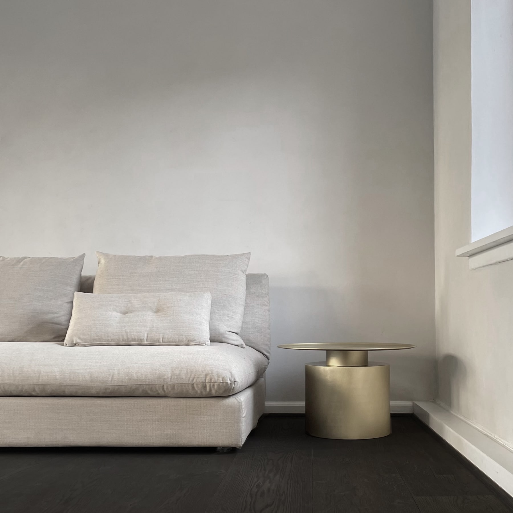 Inspired by the rich lustrous use of material in the 1930s Art Deco movement, the Pillar coffee table is a piece of statement furniture characterized by the contrast between a paper-thin tabletop and voluminous base. The Pillar coffee table comes in a tall and a low version, made of plated metal in two colours – brass and burned black – ensuring a sophisticated appearance that will be a unique addition to any home. The curved exterior makes this table great for classic and contemporary interiors alike. Designed by Kristian Sofus Hansen & Tommy Hyldahl.