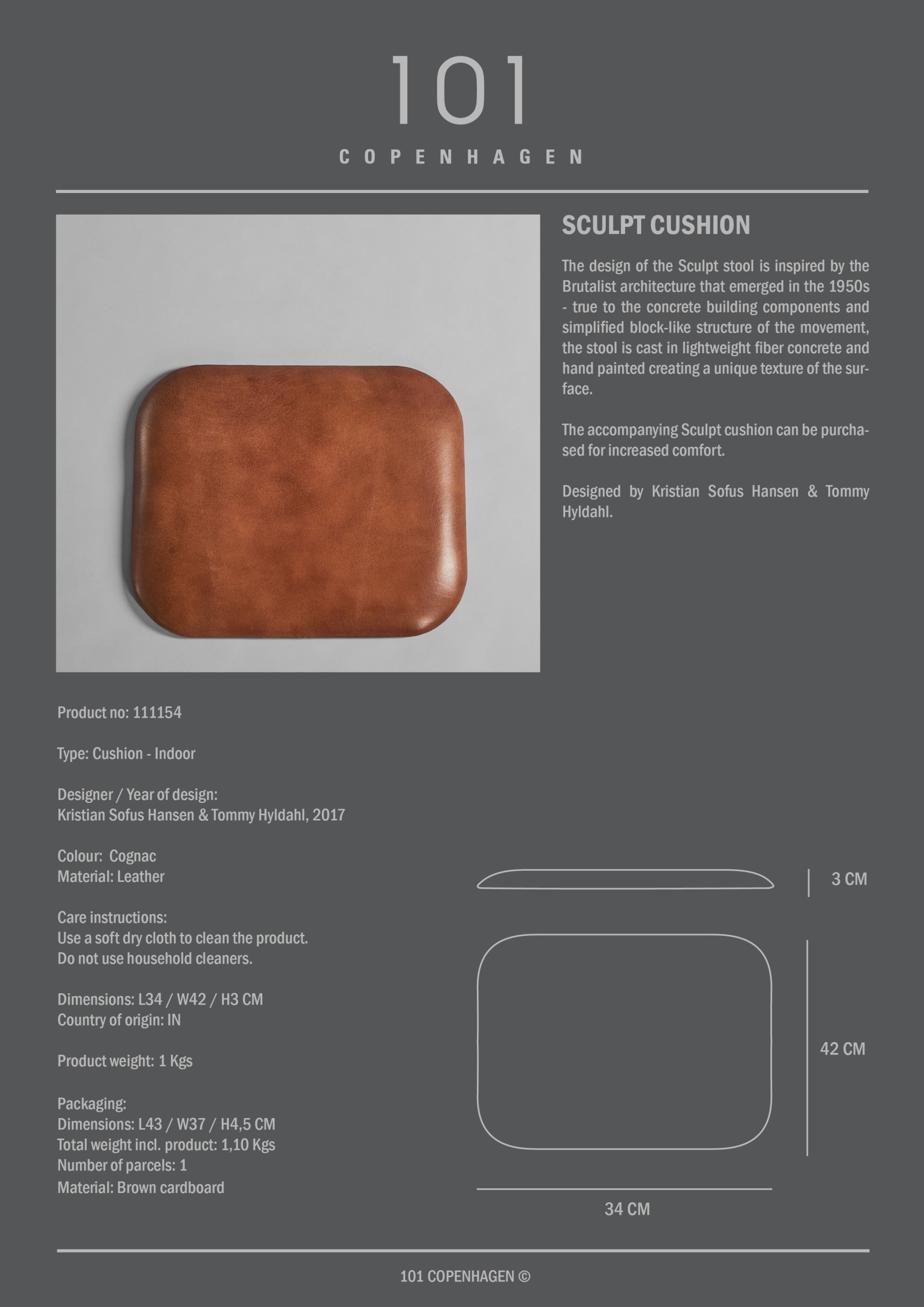 The design of the Sculpt stool is inspired by the Brutalist architecture that emerged in the 1950s – true to the concrete building components and simplified block-like structure of the movement, the stool is cast in lightweight fiber concrete and hand painted creating a unique texture of the surface. The accompanying Sculpt cushion can be purchased for increased comfort. Designed by Kristian Sofus Hansen & Tommy Hyldahl.