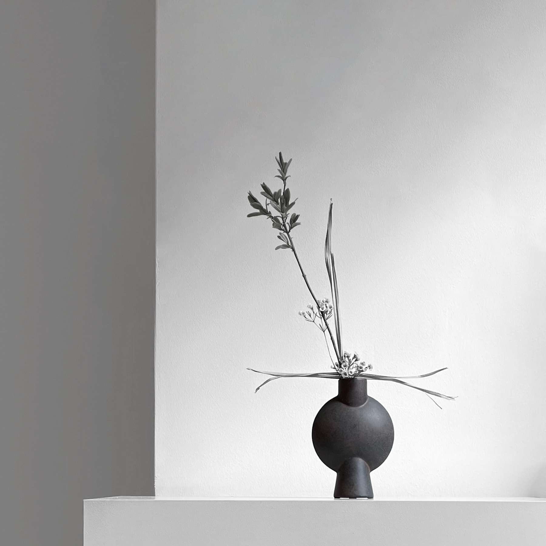 The Sphere collection has become synonymous with the visual language and the signature series of 101 Copenhagen. The series is a family of unique silhouettes and textures gathering in a decorative and sculptural manner. Elegantly sculpted, each vase is finished with an intricate ornate detailing. Inspired by ancient Chinese vases, a palette of faded earth tones is characteristic of the Sphere collection which was developed in close collaboration with highly skilled ceramists, ensuring the precise contrast between the smooth shapes and sharp edges. As it is a hand glazed natural product, the colours may vary slightly and while it is not 100% waterproof, a bag for fresh flowers is included. Designed by Kristian Sofus Hansen & Tommy Hyldahl.