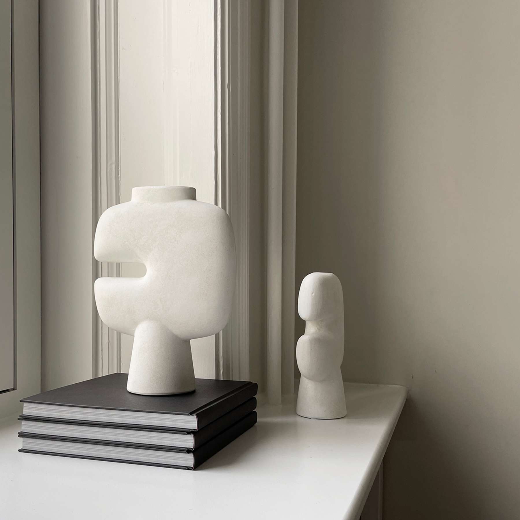 The Tribal collection is a series of vases designed as a sculptural take on the archetypal idea of a tribal mask. Place single flower stems in the narrow top opening or simply leave the vase as a standalone art object. Like open mouths on pedestals, the masks are a beautiful shaped item in calm, soothing and dusty terracotta and grey colours. As it is a hand glazed natural product, the colours may vary slightly and while it is not 100% waterproof, a bag for fresh flowers is included. Designed by Kristian Sofus Hansen & Tommy Hyldahl.Made of ceramic.