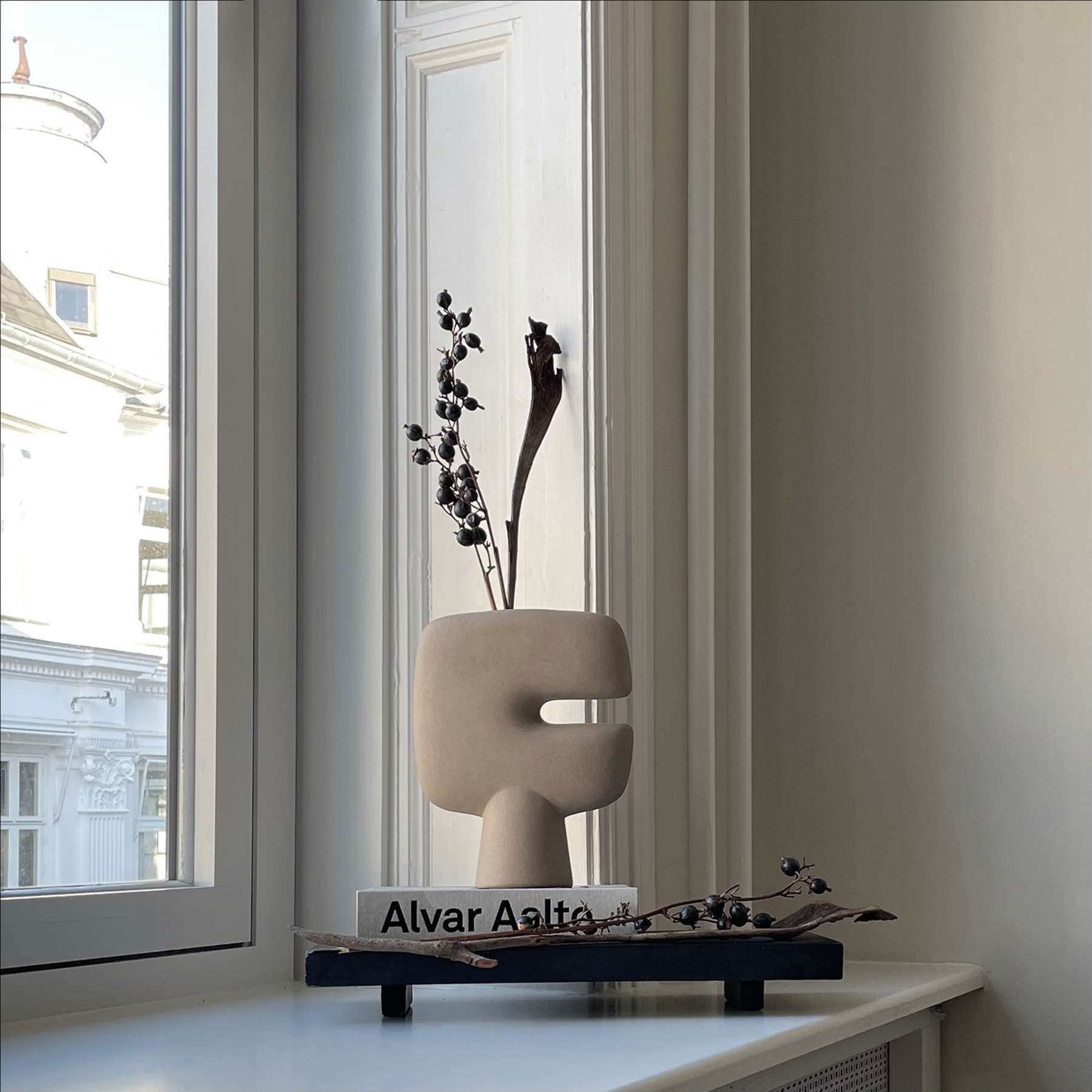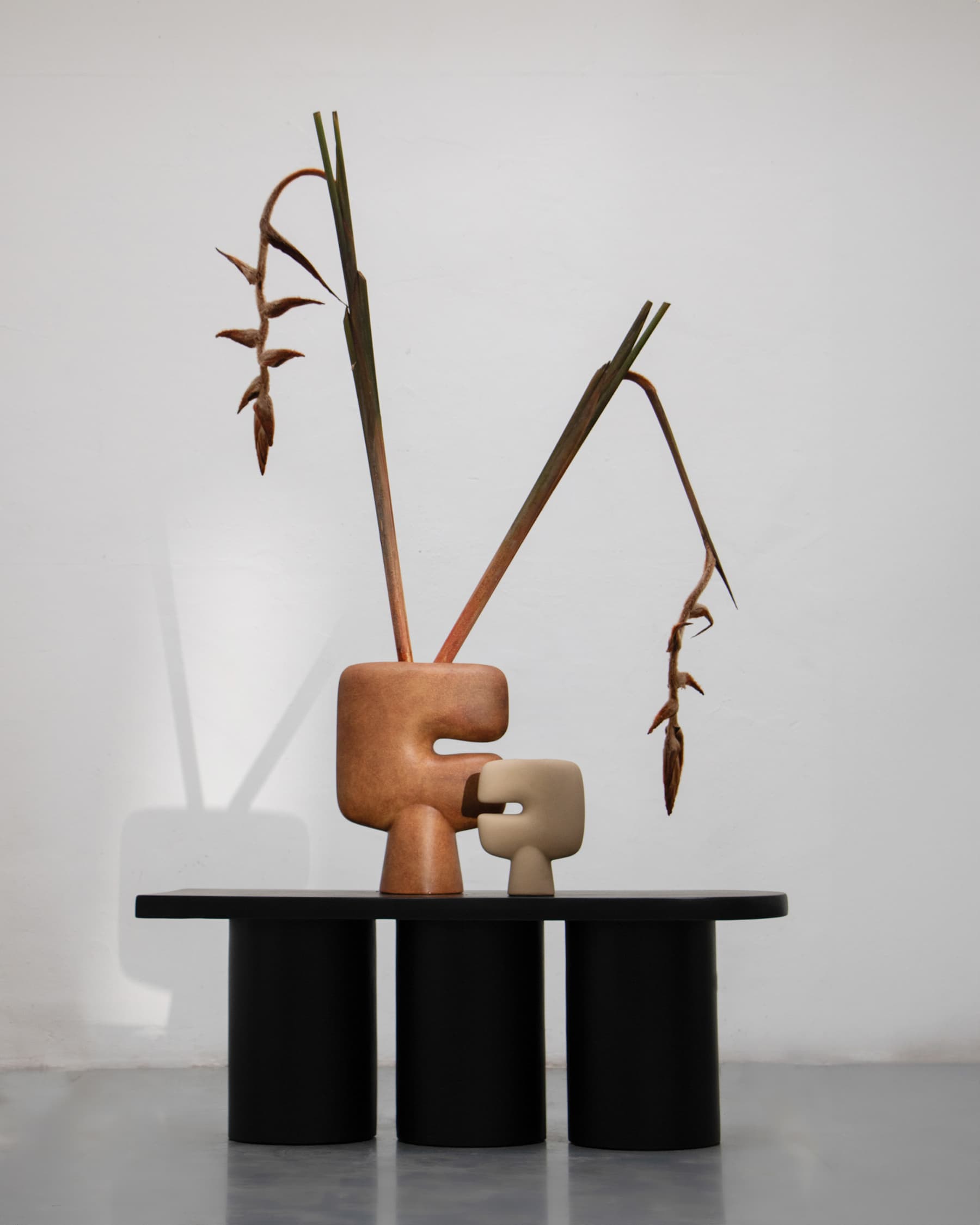 The Tribal collection is a series of vases designed as a sculptural take on the archetypal idea of a tribal mask.Place single flower stems in the narrow top opening or simply leave the vase as a stand-alone art object. Like open mouths on pedestals, the masks are a beautiful, shaped item in calm, soothing and dusty terracotta and grey colours.  As it is a hand glazed nature product, the colours may vary slightly and is meticulously glazed on the inside with a waterproof lacquer, ensuring that the vase is entirely waterproof.Designed by Kristian Sofus Hansen & Tommy Hyldahl.