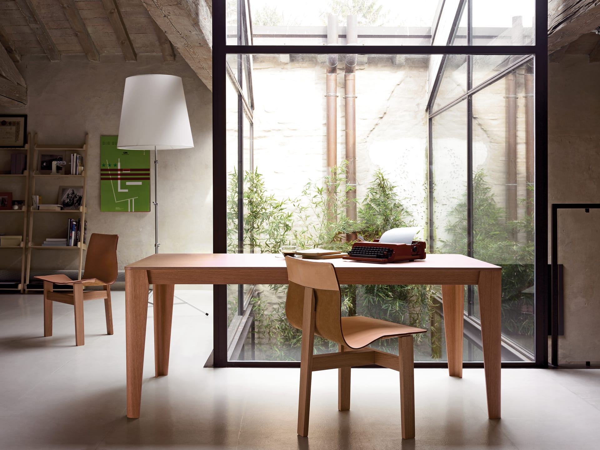 Tables made out of thin layers of plywood, whose curving forms make them more rigid, giving strength and stability to a very simple structure, which is made lighter and more streamlined by the tapering leg design. A construction system initially planned to be dismantled, a striking project which won praise from the great Alvar Aalto, a design which still looks brilliant in for its compositional precision, structural clarity and the clever balance of its defining proportions.