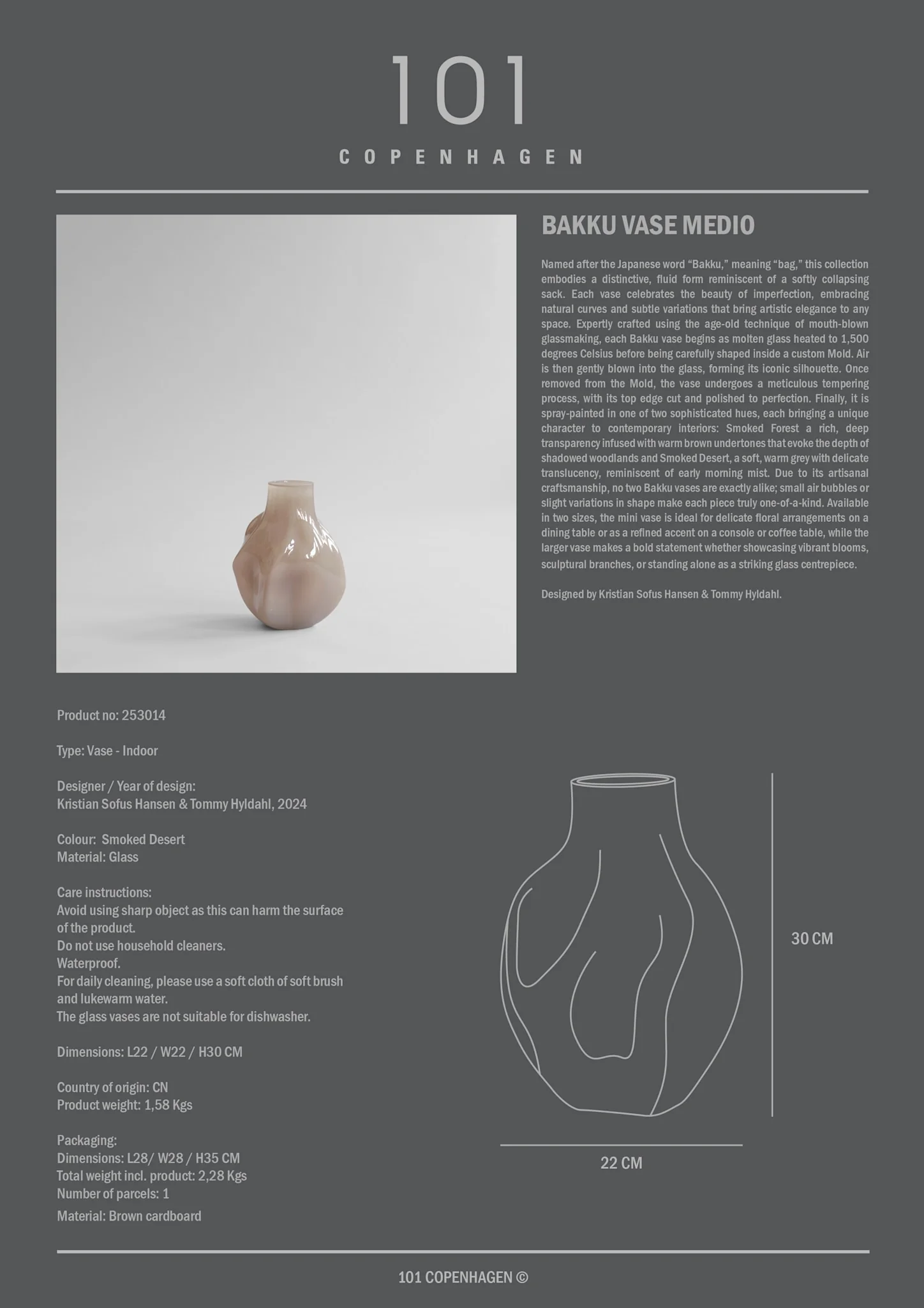 Expertly crafted using the age-old technique of mouth-blown glassmaking, each Bakku vase begins as molten glass heated to 1,500 degrees Celsius before being carefully shaped inside a custom mould. Air is then gently blown into the glass, forming its iconic silhouette. Once removed from the mould, the vase undergoes a meticulous tempering process, with its top edge cut and polished to perfection.