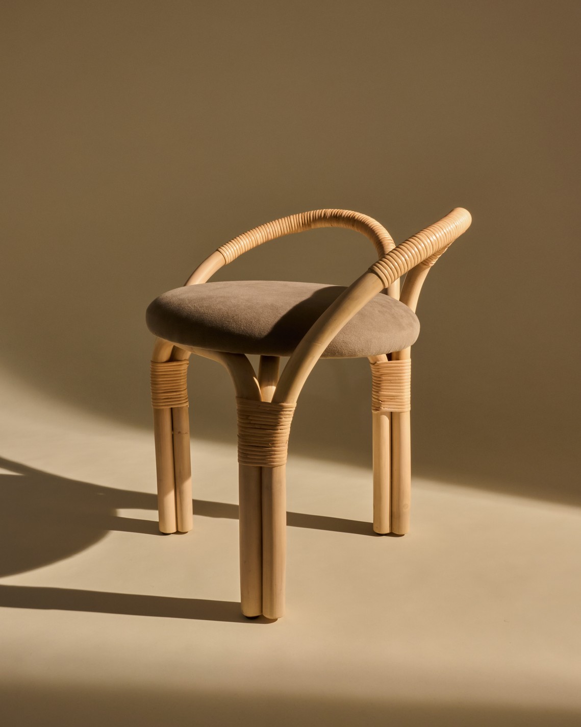 Designed for GUBI by Michele De Lucchi’s AMDL Circle, Bistra is a sculptural furniture collection that distills the classic bistro chair to its essential form, finding elegance and timelessness in its core structural elements. Comprising a dining armchair, a lounge chair, and a three-legged stool, the collection is rooted in its principal material: steam-bent rattan. Its visual language draws from the idea of organic growth, expressed in the tree-like contours of the legs, arms, and backrest, and echoed in the custom-designed upholstery, which features a botanical motif inspired by a Leonardo da Vinci fresco. Available in three frame colors and multiple upholstery fabrics, Bistra is a versatile seating collection that blends artisanal furniture-making traditions with exquisite contemporary craftsmanship.