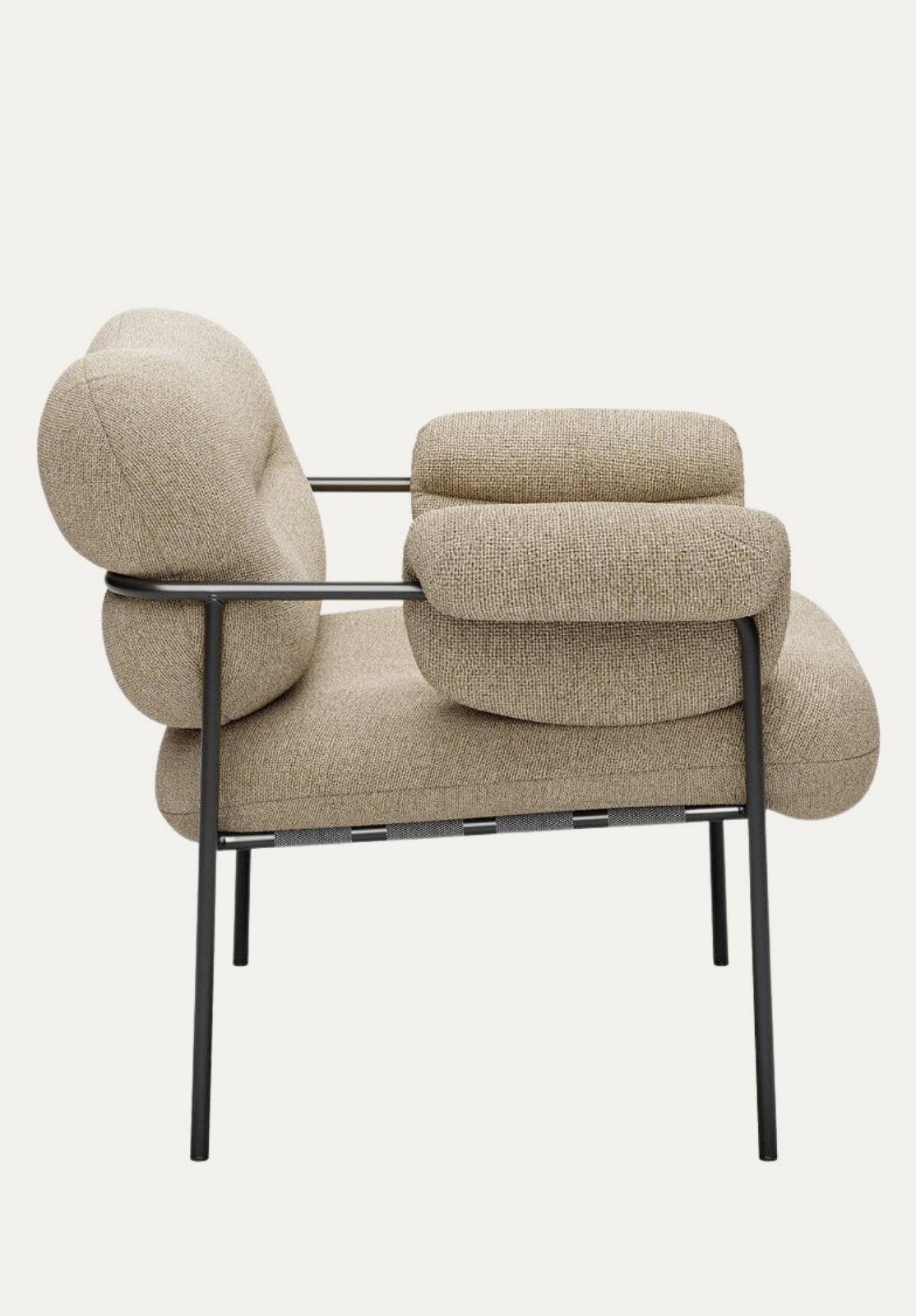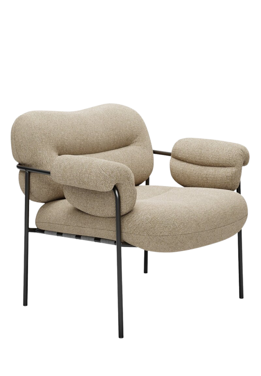 The upholstery envelops the metal frame with soft, continuous volumes, offering deep comfort and informal yet elegant seating. The ample proportions allow total freedom of movement: one can sit with legs crossed or gathered without sacrificing comfort. Bollo was born from a careful balance between functionality, aesthetics and optimization of materials, becoming an icon of contemporary Scandinavian design.