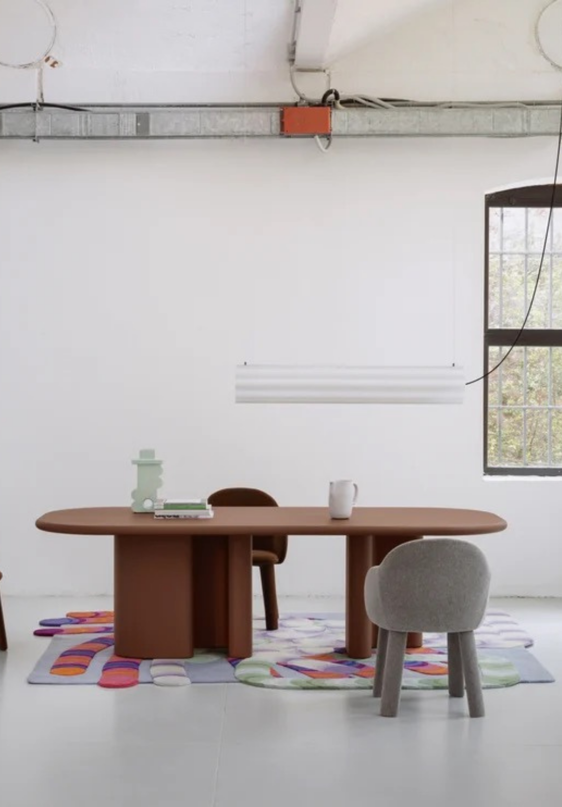 Bonbon combines solidity with perceptual lightness: clarity of line, material strength, and balanced proportions converge to create a table that is both recognizable and discreetly assertive, anchoring the space without disturbing its harmony.
