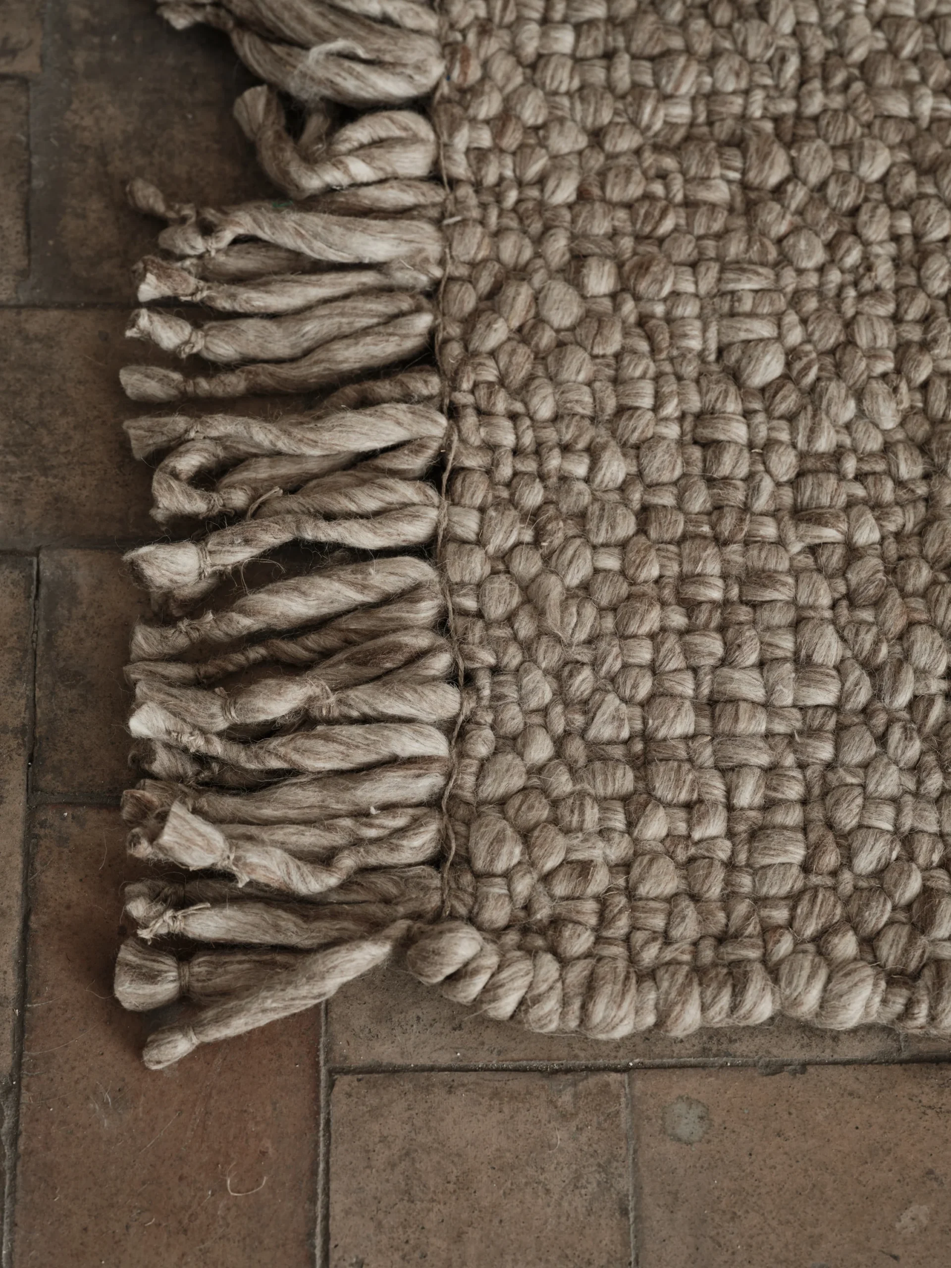 Colonnade no.03 is a compact, and rustic rug created in luxury chunky wool and woven in a classic basket weave construction with bold, over-dimensioned fringes.