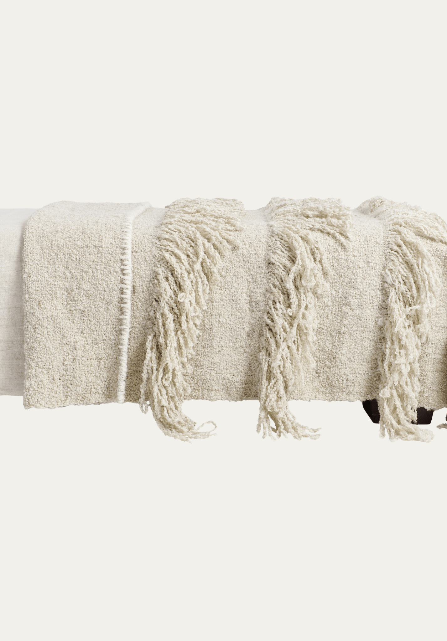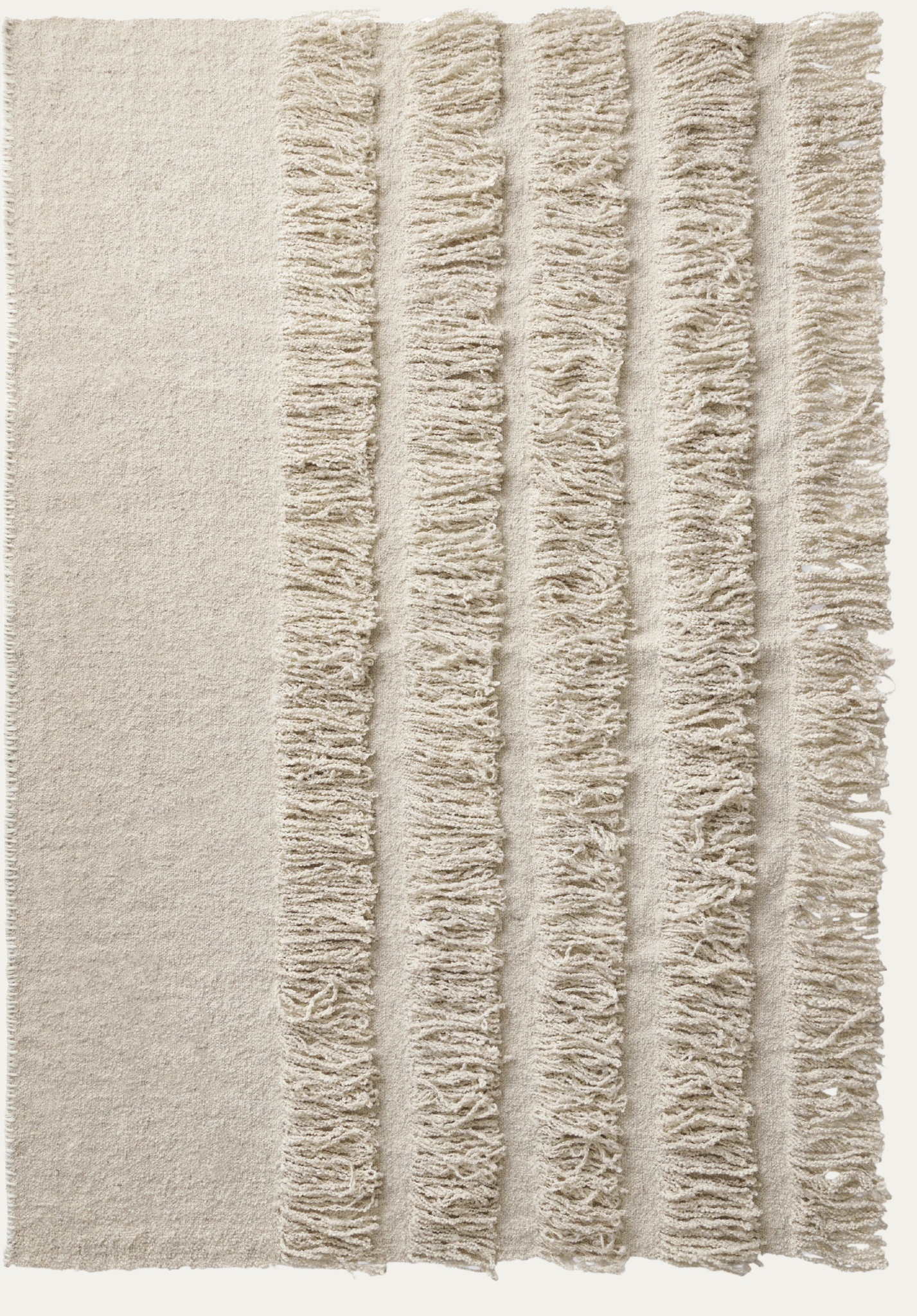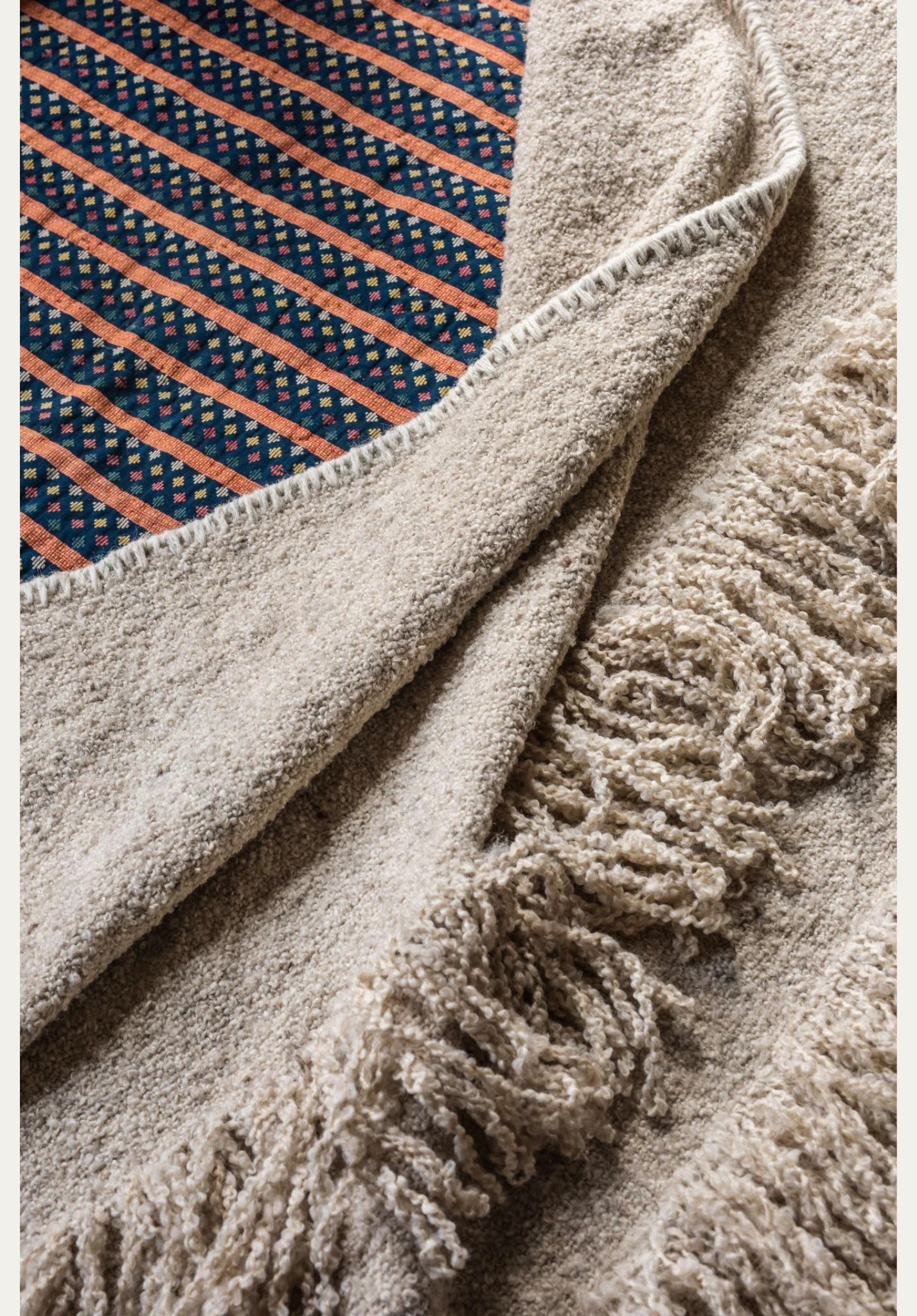 Coverlet no.02 is designed to embrace opulence and luxury. It’s rich fringes and hand-sewn decorative edge stitch make a bold statement, while the layered flat weaving adds an eye-catching dimension. Unlike traditional bedspreads, Cappelen Dimyr coverlets are designed to cover the lower half of the bed, adding a sophisticated and personal touch to your space.