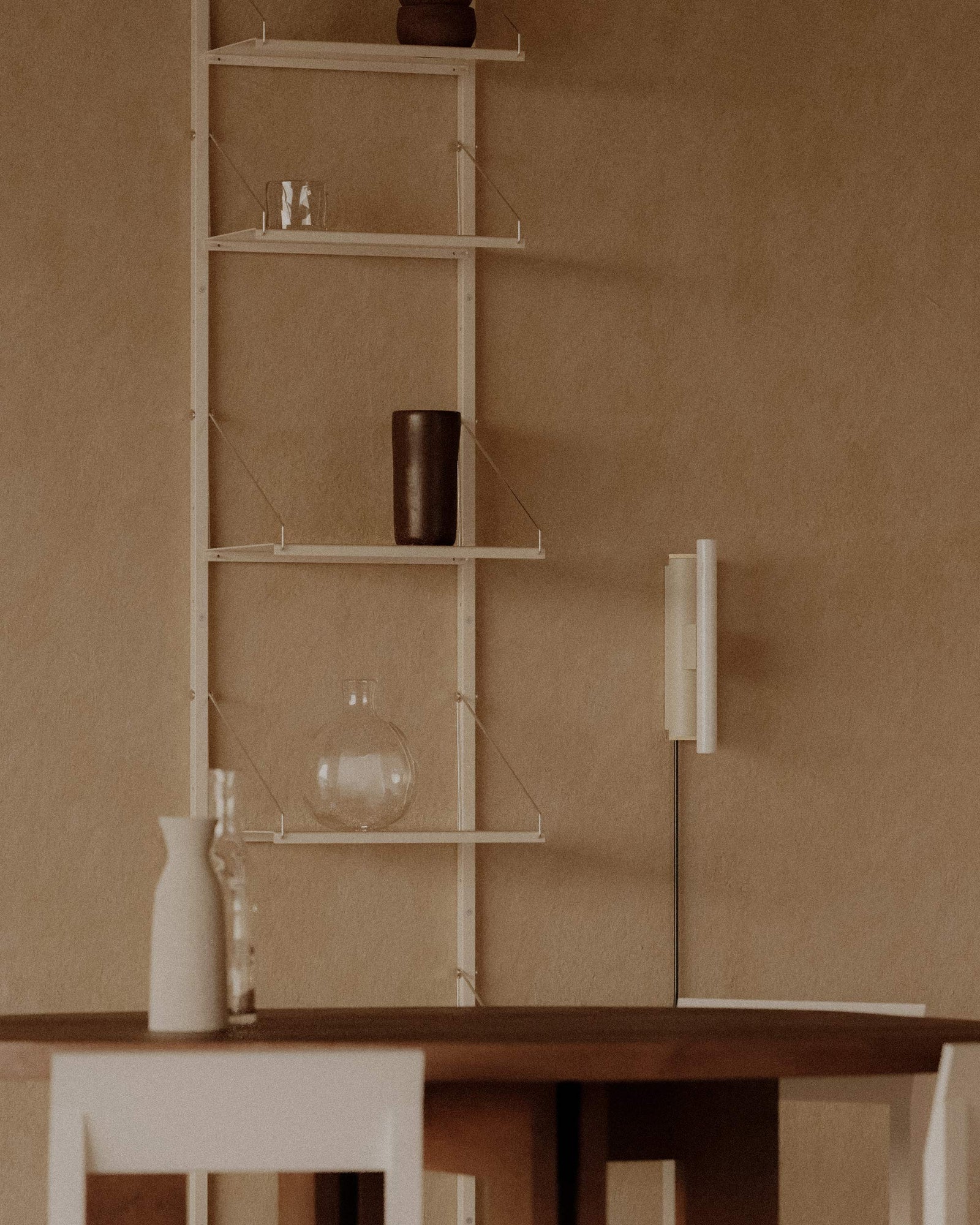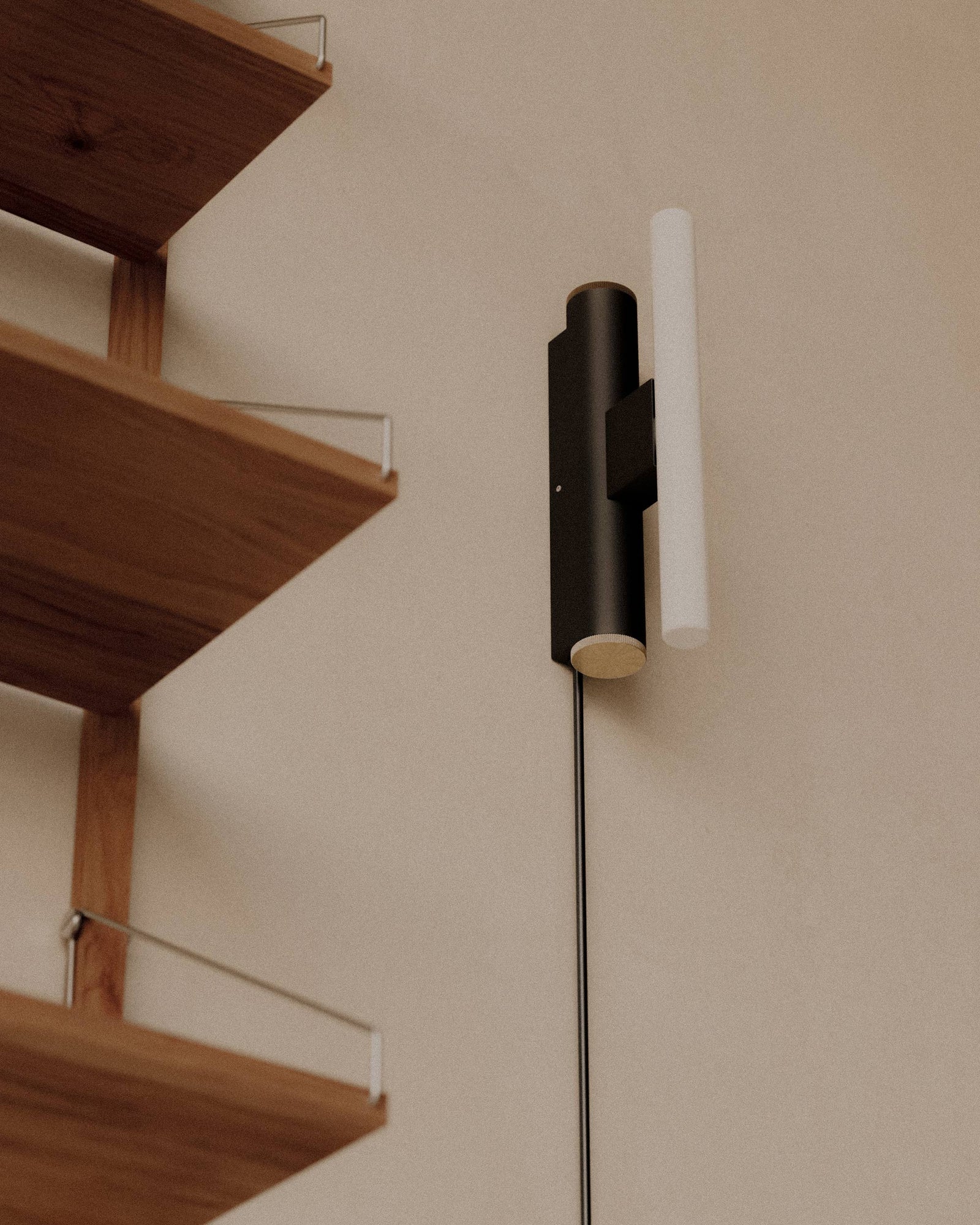 The Eiffel Wall Lamp reflects the balance between construction and form, made with simplicity in mind. The lamp features a powder-coated metal rod and a brass metal dimmer switch placed at the end of its structure for precisely positioning and controlling the light source, diffusing a warm, soft glow. A simple, uncomplicated design effortlessly complementing a wide range of settings.