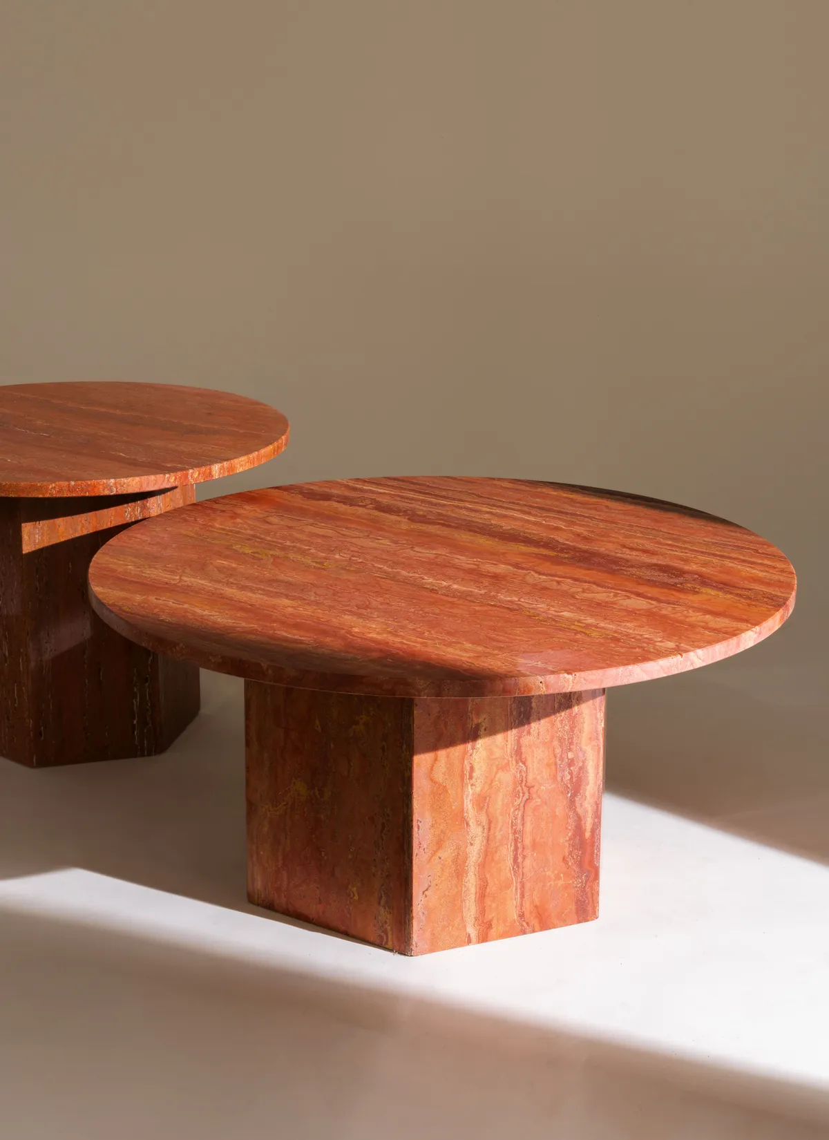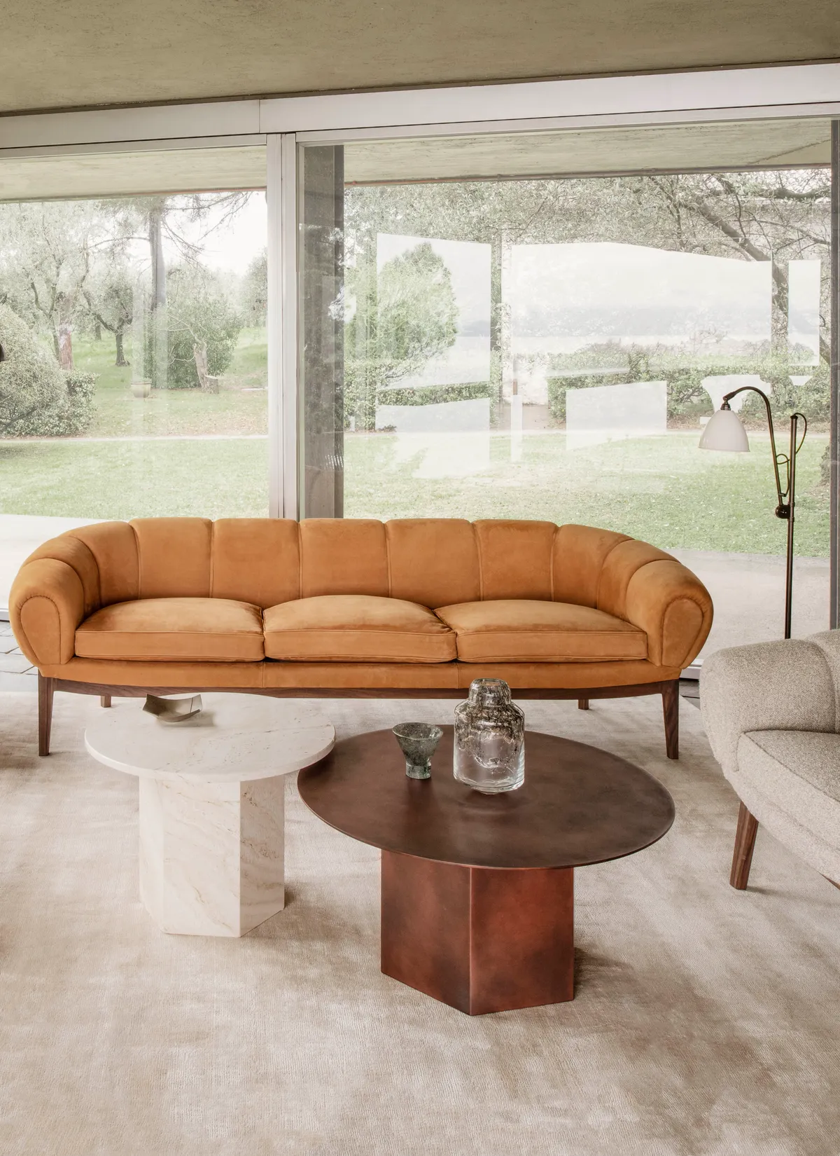 Named after the epic poems of ancient times, GamFratesi’s Epic Table for GUBI is a sculptural piece of furniture inspired by Greek columns and Roman architecture. Originally made in Italy from travertine stone, the table’s new variant marks the first time GamFratesi has worked with steel plates, which are galvanized, lacquered, and then treated with a series of hand-finishing processes to create a unique surface expression for each table. The table’s monolithic form remains, now with an industrial expression, in which a new detail can be discovered with every use. The collection brings personality to private settings and an intriguing sense of weight and tactility to public and hospitality spaces, where its resilient surfaces offer exceptional levels of durability. The varying heights and diameters within the Epic Table Collection mean a single monochromatic table can stand alone or be combined in dynamic clusters of varying material, height and color.