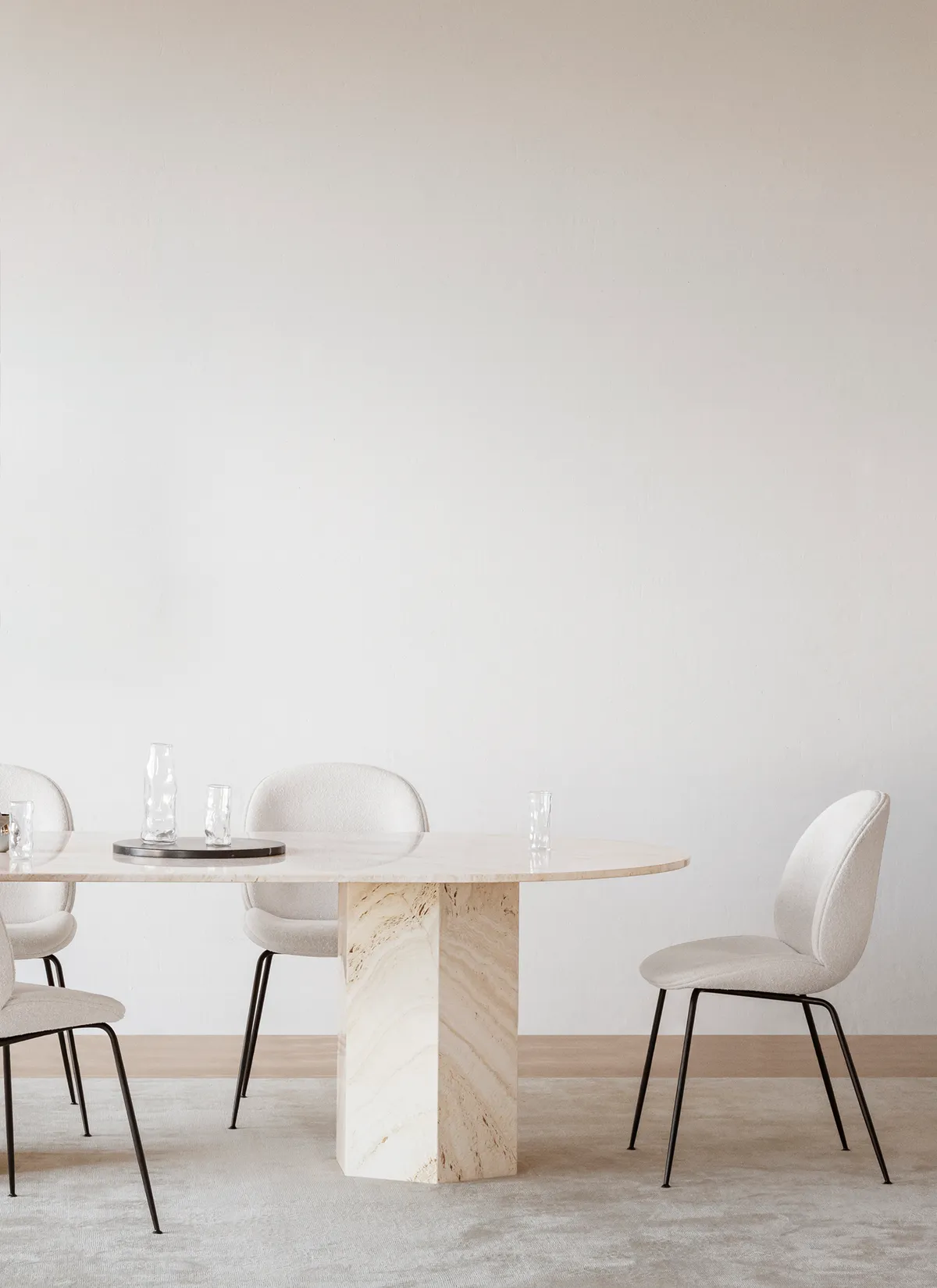 Named after the epic poems of ancient times, GamFratesi’s Epic Table for GUBI is a sculp- tural piece of furniture inspired by Greek columns and Roman architecture. Originally made in Italy from travertine stone, the table’s new variant marks the first time GamFratesi has worked with steel plates, which are galvanized, lacquered, and then treated with a series of hand-fin- ishing processes to create a unique surface expression for each table. The table’s monolithic form remains, now with an industrial expression, in which a new detail can be discovered with every use. The collection brings personality to private settings and an intriguing sense of weight and tactility to public and hospitality spaces, where its resilient surfaces offer exceptional levels of durability. The varying heights and diameters within the Epic Table Collection mean a single monochromatic table can stand alone or be combined in dynamic clusters of varying material, height and color.