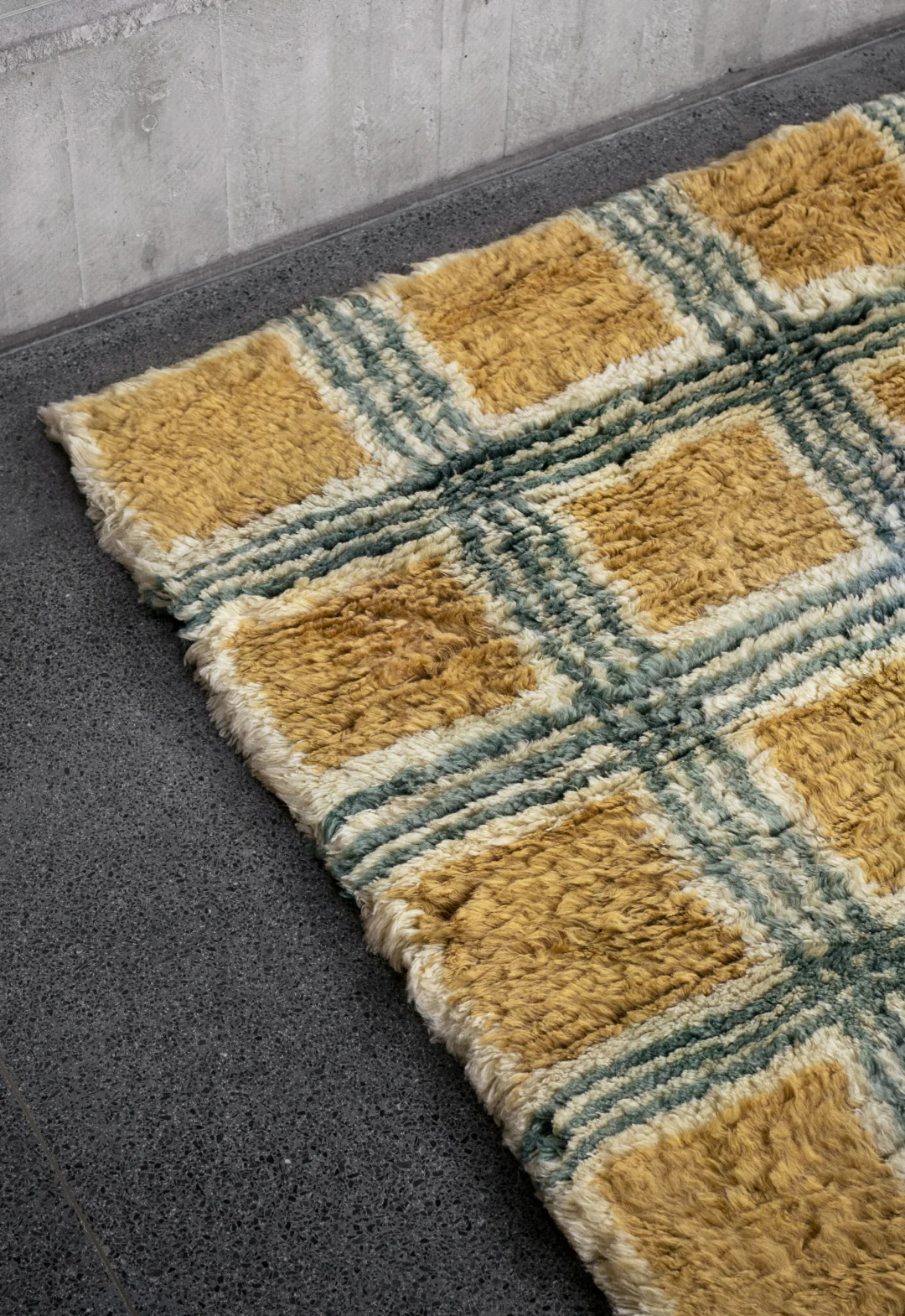 Artist Series Evelina Kroon: Soft volume, graphic play and the return of the rya rug – This handcrafted rug is made from 100% New Zealand wool and hand-woven into long, shaggy rya piles, emphasizing tactility, volume, and rhythm while offering a contemporary interpretation of traditional Scandinavian craftsmanship.