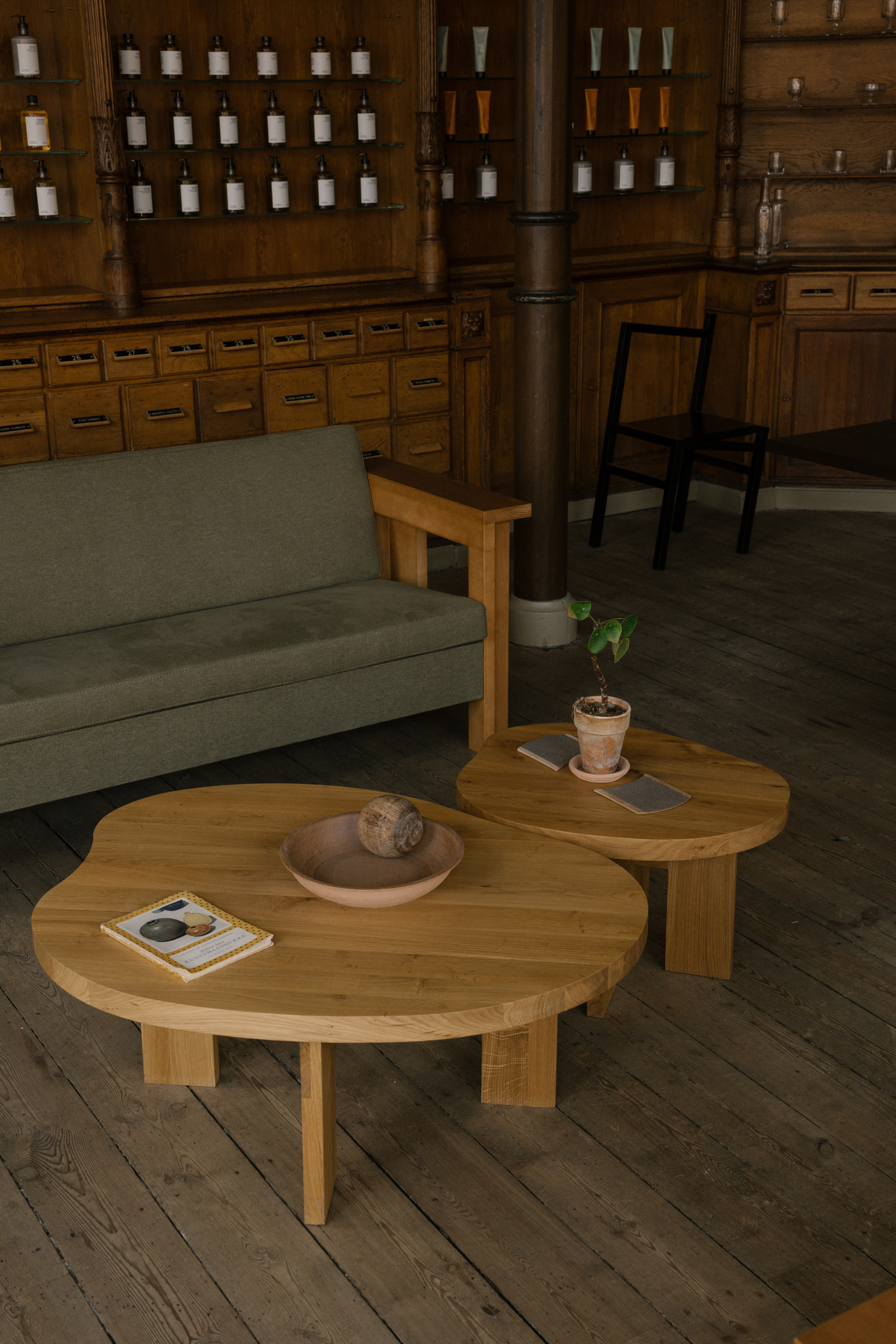 The Farmhouse Coffee Table Pond is a uniquely sculptural and organic pond-shaped table design crafted in high-quality solid oak. Supported by trestles and inspired by traditional farmhouses with a rural aesthetic, the wooden coffee table serves as a focal point in any living space.
