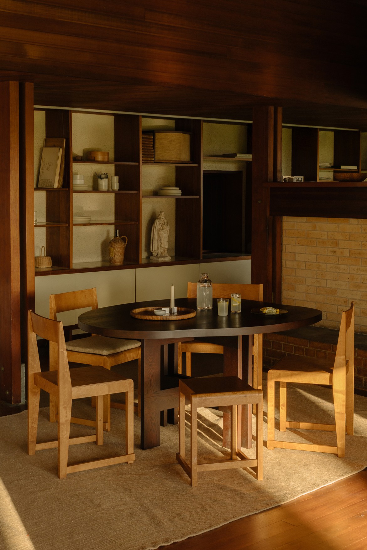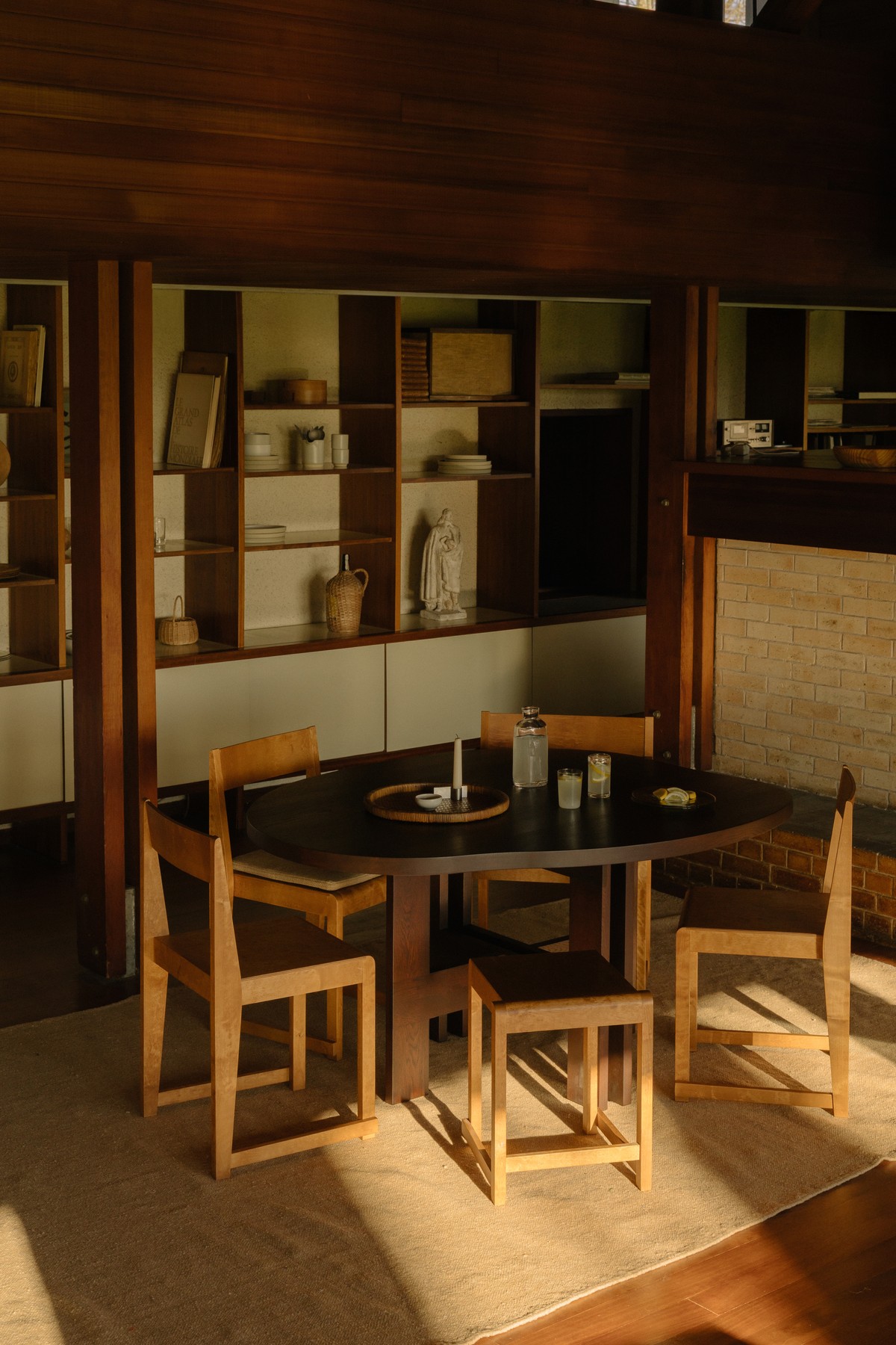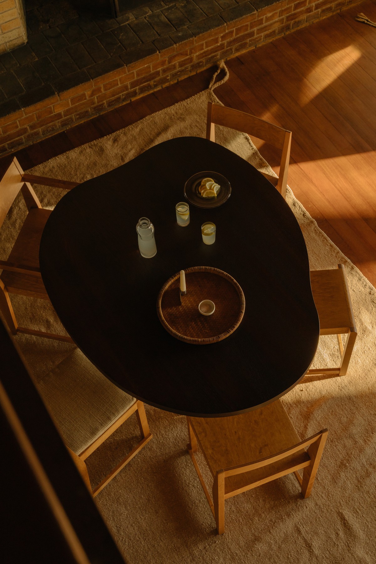 The Farmhouse Trestle Table Pond in dark oak is a uniquely sculptural and organic pond-shaped table design featuring a rich, deep finish and sleek aesthetic. Crafted in high-quality solid oak, supported by trestles, and inspired by traditional farmhouses with a rural aesthetic, the wooden dining table serves as a focal point in any living space, kitchen, or dining room.