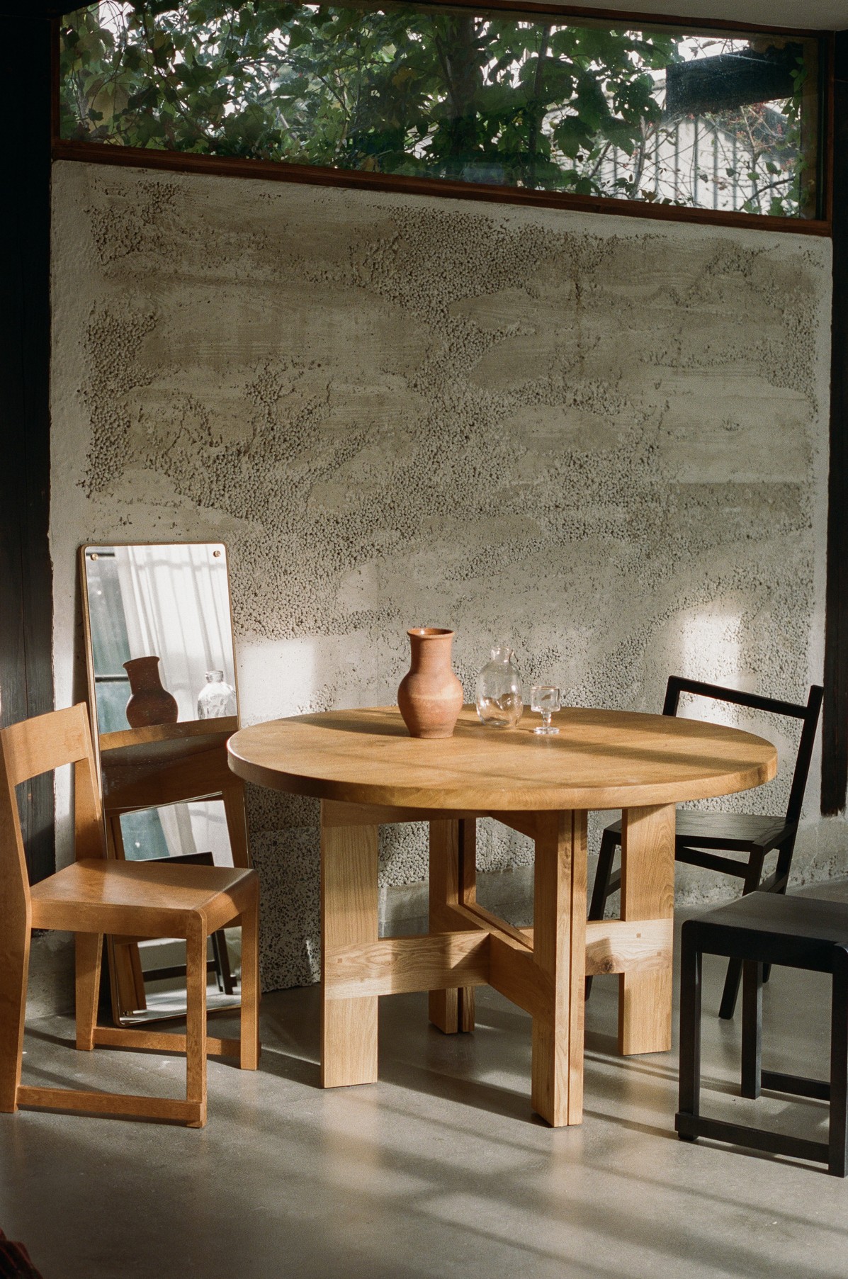 Farmhouse Trestle Table | Natural Oak | Round | Sculptural Design