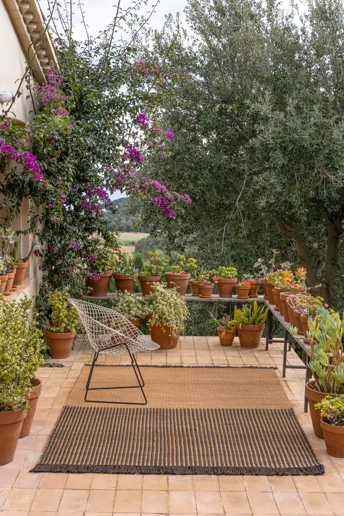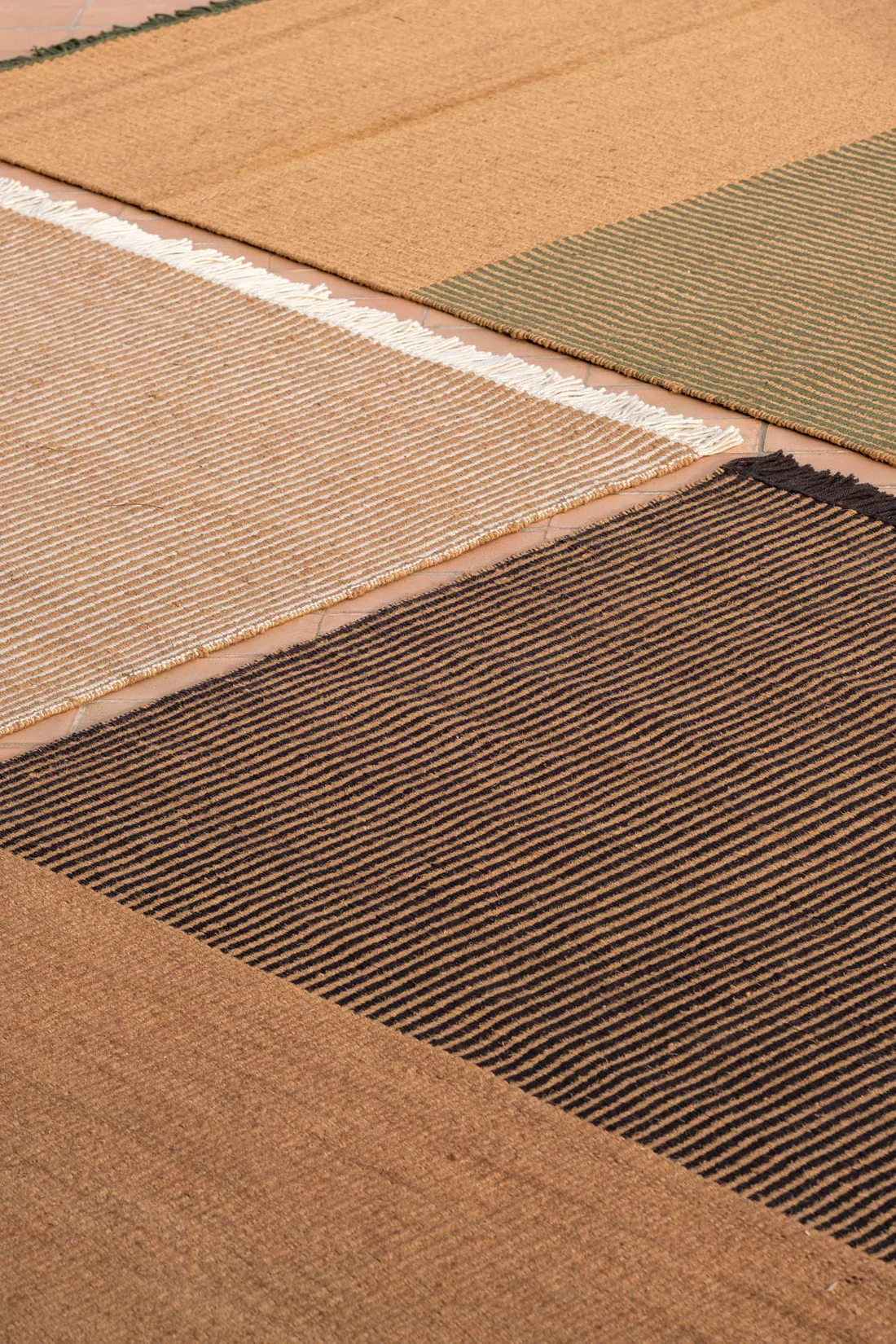 The collection highlights the harmony between nature and craftsmanship, offering an elegant solution capable of blending into any outdoor environment, from gardens to terraces. Its earthy tones and organic textures evoke the serenity of nature, creating an atmosphere of calm and connection with the outdoors. Coconut fiber, known for its durability and strength, is the main component of this rug, offering a perfect solution for those looking for a touch of natural elegance without sacrificing resilience. Unlike previous outdoor rugs, which were initially designed for interiors and adapted for outdoor use, this new proposal has been specifically created to blend into outdoor spaces and become a unique element that adds warmth and character to the environment.