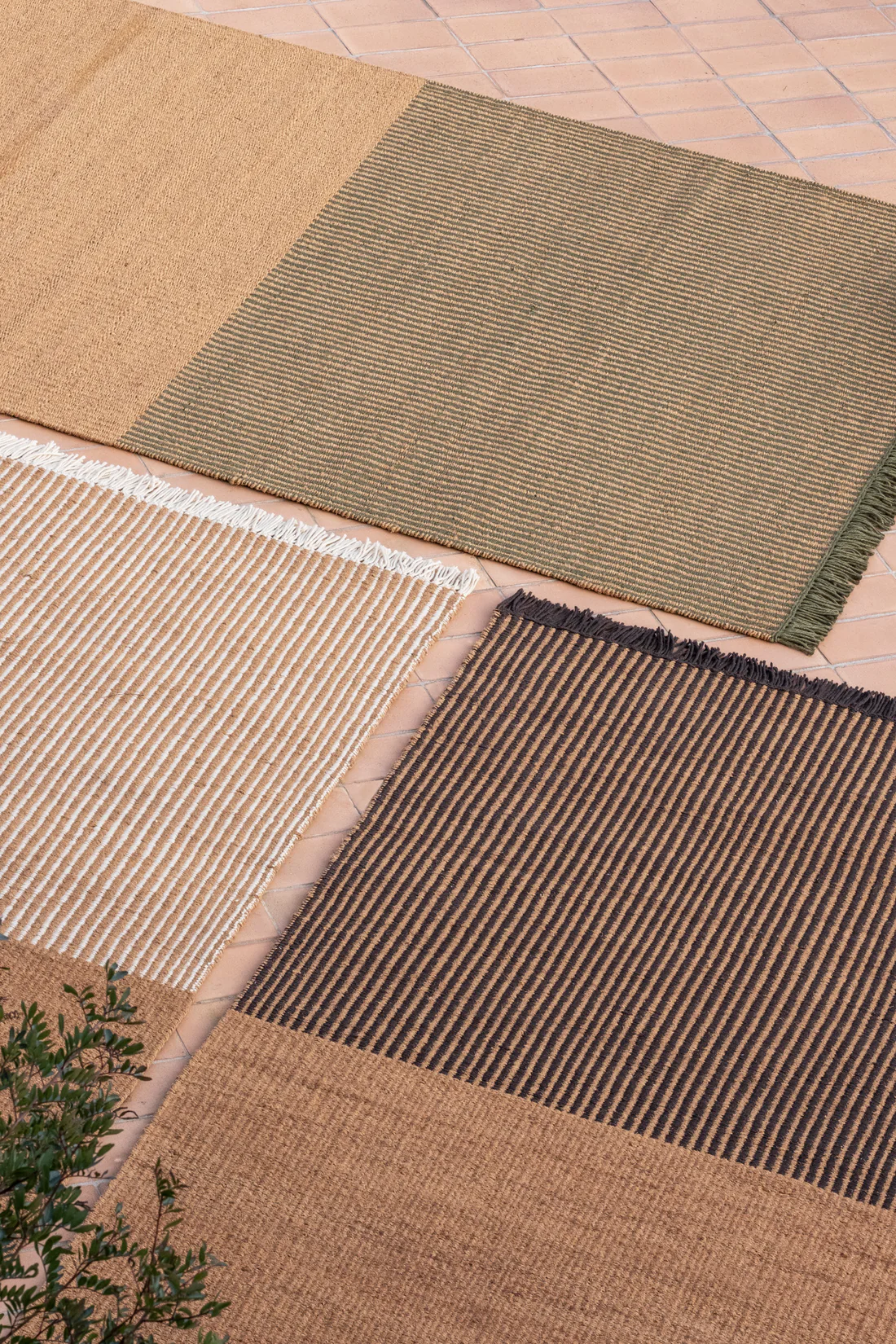 The collection highlights the harmony between nature and craftsmanship, offering an elegant solution capable of blending into any outdoor environment, from gardens to terraces. Its earthy tones and organic textures evoke the serenity of nature, creating an atmosphere of calm and connection with the outdoors. Coconut fiber, known for its durability and strength, is the main component of this rug, offering a perfect solution for those looking for a touch of natural elegance without sacrificing resilience. Unlike previous outdoor rugs, which were initially designed for interiors and adapted for outdoor use, this new proposal has been specifically created to blend into outdoor spaces and become a unique element that adds warmth and character to the environment.