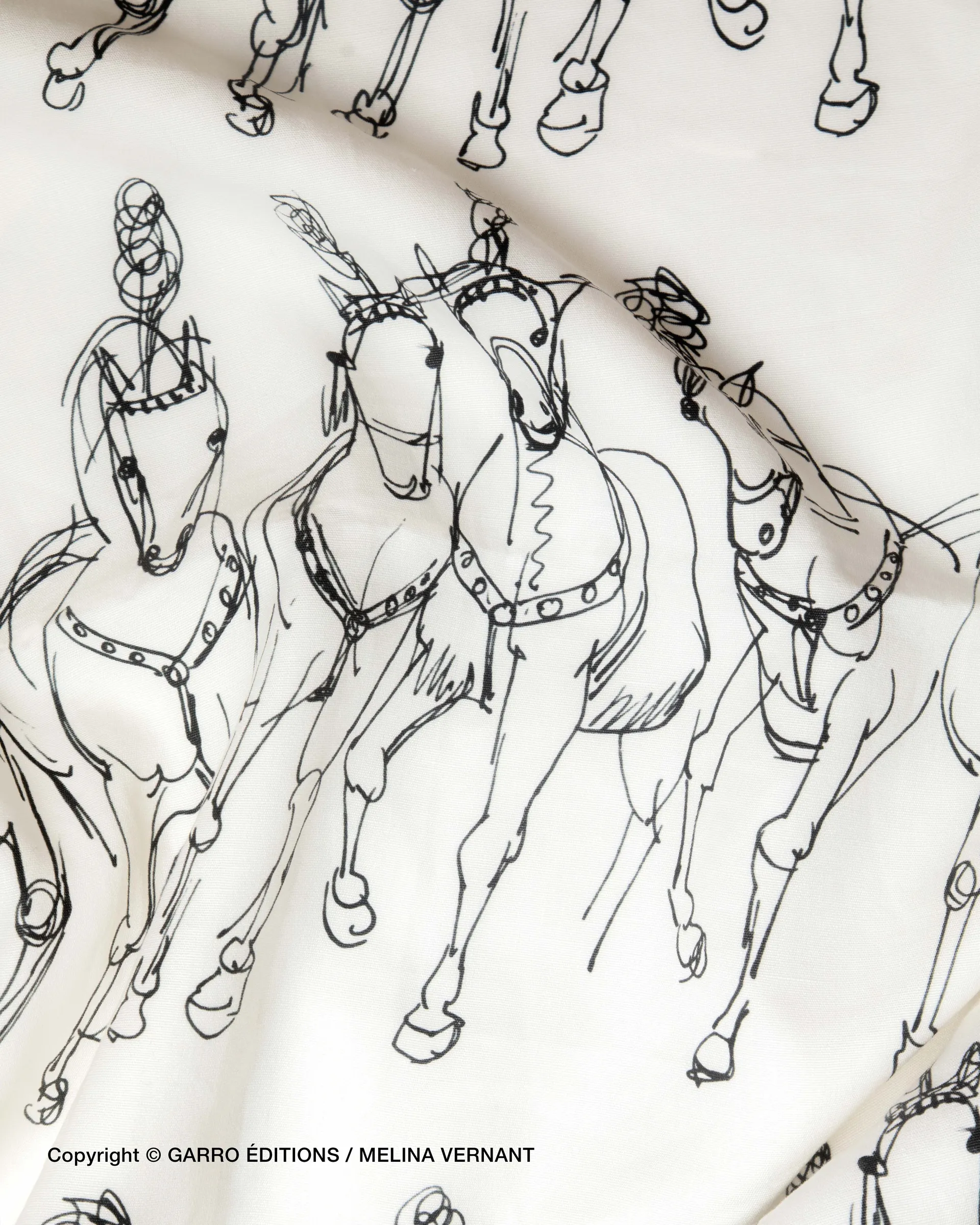 Henry Moore was fascinated by horses and other livestock, and returned to them as inspiration for studies, sketches, and other artworks throughout his career. Personally selected by GARRO ÉDITIONS founder Héloïse Garro on a visit to the Henry Moore Foundation’s archive, The 9602 special edition is adorned with ‘Haringey Circus Horses’, a spontaneous pen-and-ink drawing created by Henry Moore in 1956 during a trip to the circus with his daughter. The drawing portrays the electric moment when the horses first step out into the ring, full of anticipation.