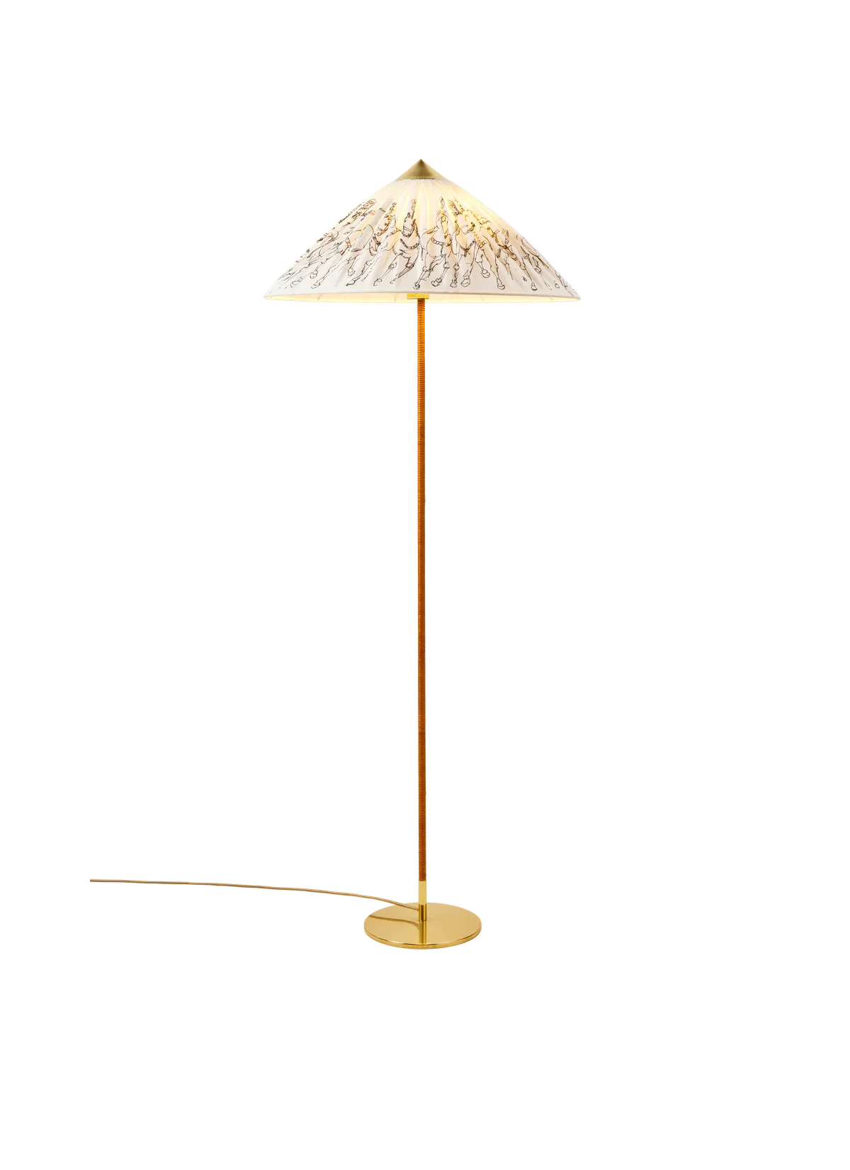 The 9602 Floor Lamp, also known as “Chinese Hat” was designed by Paavo Tynell in 1938 for the hotel Aulanko. Characterised by its elegant and airy lampshade and rattan-covered stem, the 9602 Floor Lamp shows the designer’s limitless imagination and unparalleled ability to create designs of enduring beauty. Adding a playful, exuberant quality to the top, balanced by the more static form of the base, the 9602 Floor Lamp is perfectly suited for creating a gentle ambient light in the domestic living room.