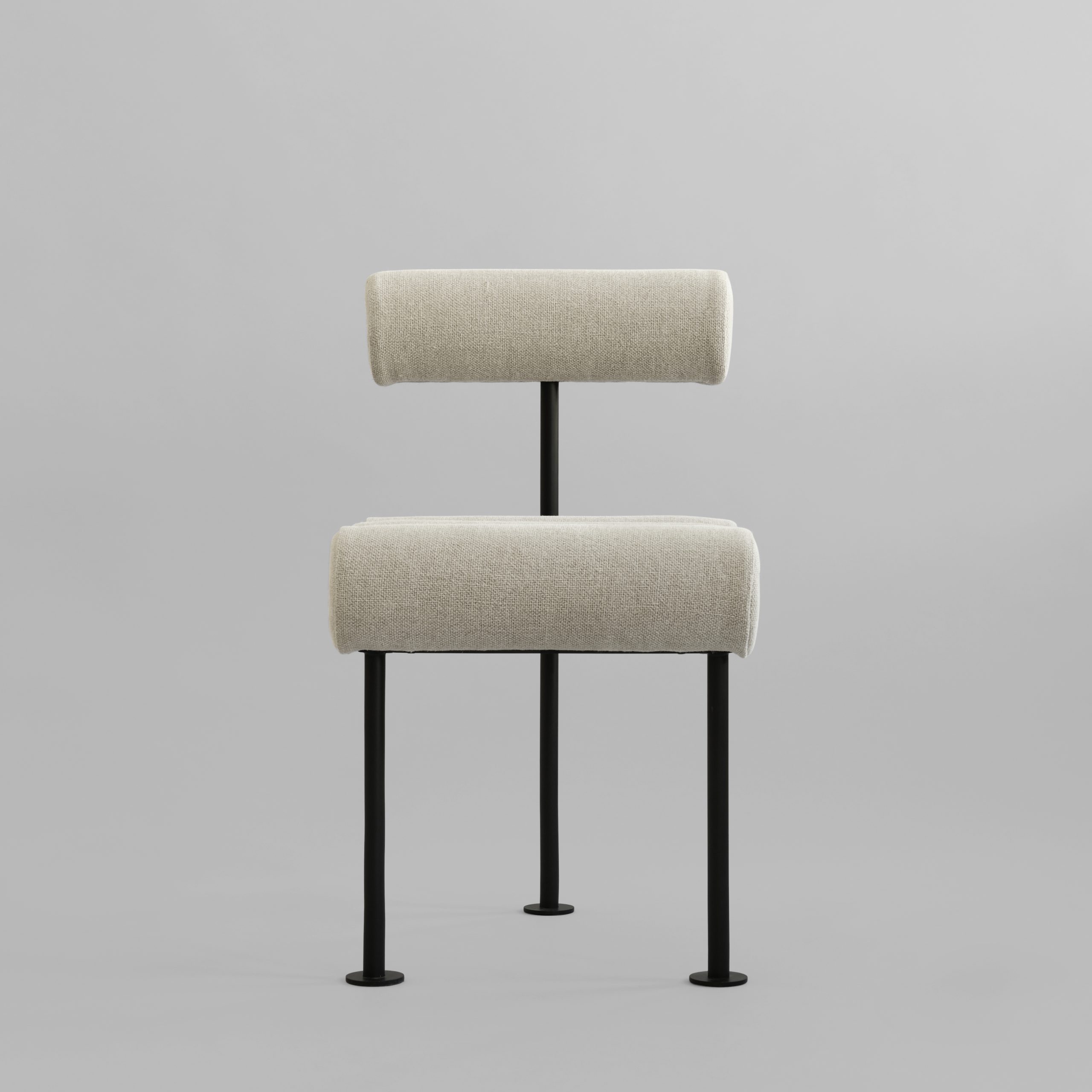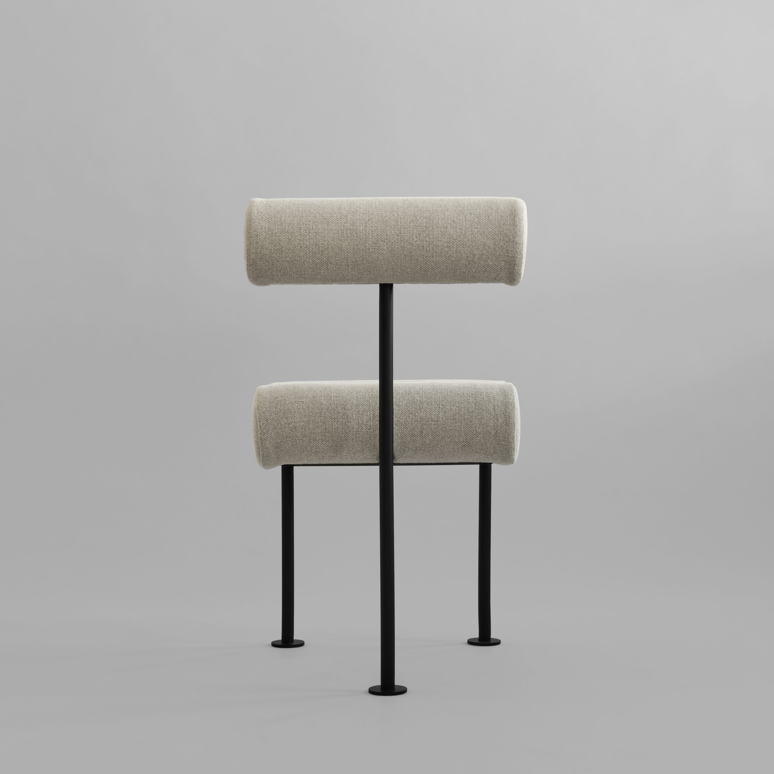 Named after the Japanese word for “generous,” Hiro embo- dies a sense of openness and ease. Its light, minimalistic construction features a simple steel frame supporting two cylindrical backrest doubles as a practical handle – allowing for effortless movement and versatility throughout the home. Blending functionality and form, Hiro chair draws its in- spiration from minimalist sculpture, transforming the chair from a merely object to a sculptural piece to place at a dining table or used as a sculptural accent in a bedroom or hallway. Hiro adapts seamlessly to its surroundings.