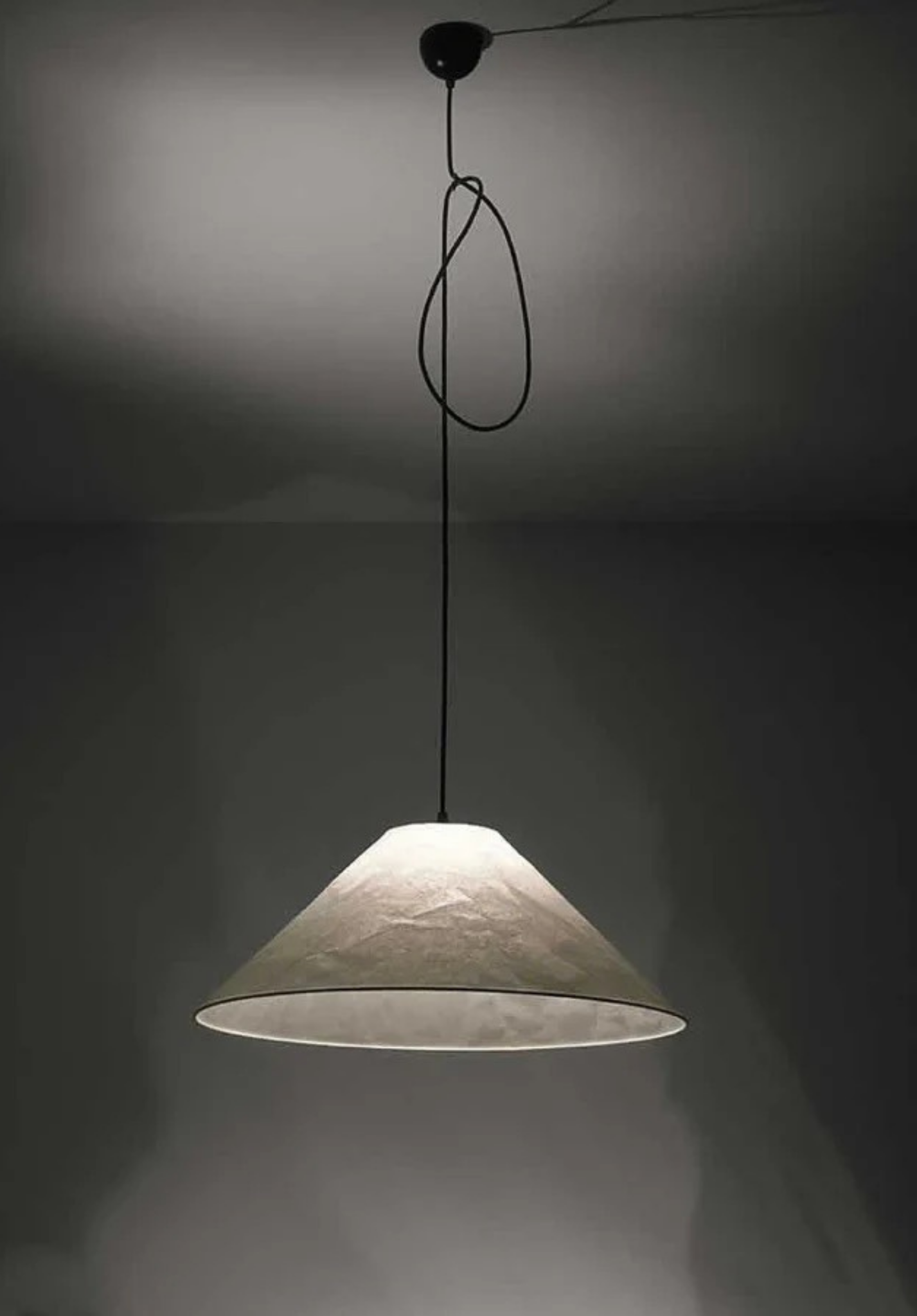 Knitterling by Ingo Maurer combines the traditional shape of a lampshade with translucent Japanese paper. Due to the low material input, paper and bent metal wires Knitterling is an extremely sustainable product.