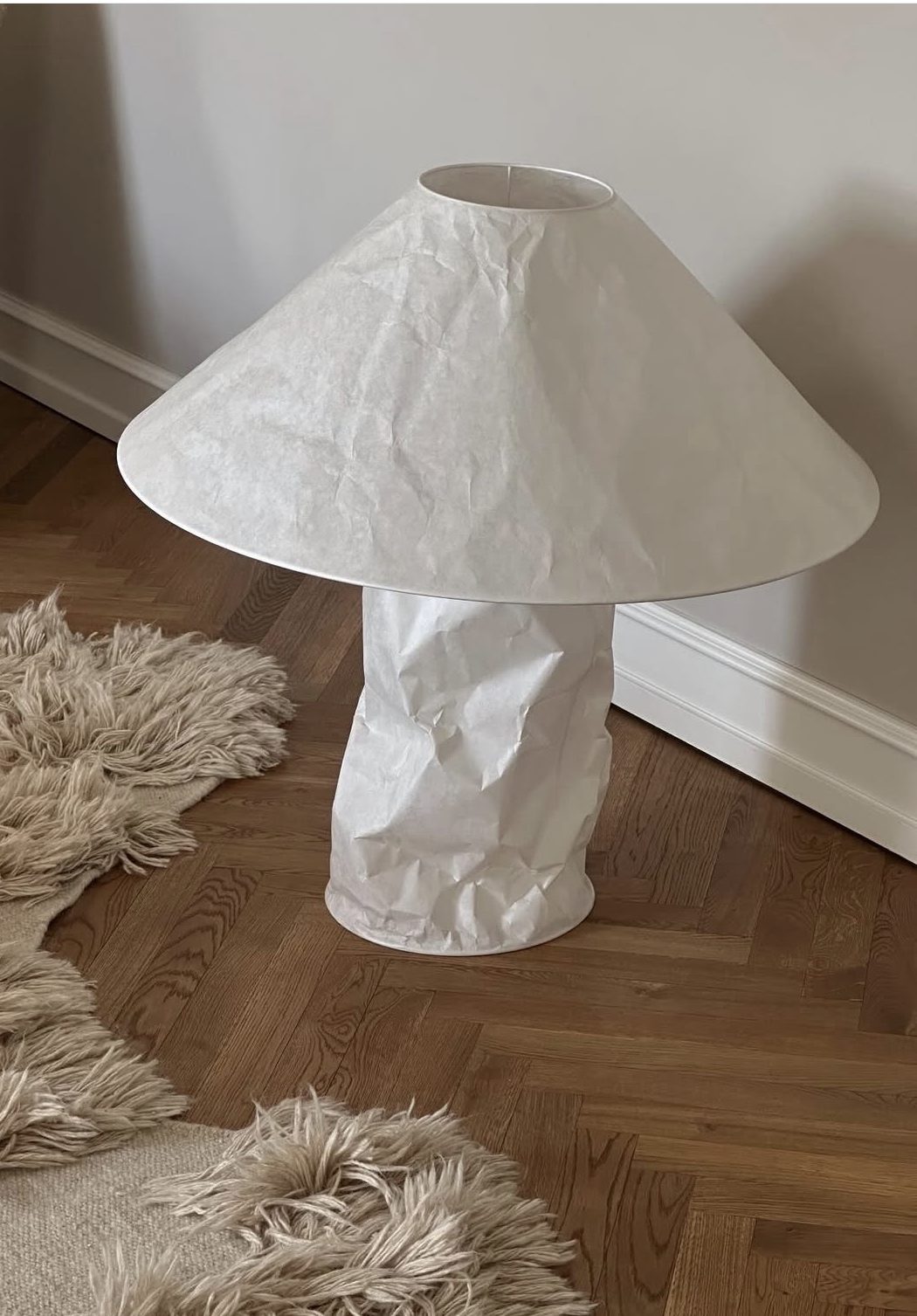 In the design of Lampampe, Ingo Maurer has taken up the form of traditional lampshades and yet formulated a new aesthetic. The Lampampe shade is handmade in our own production in Munich. The paper produces a soft, completely glare-free light and is slightly crumpled as a deliberate design element. Lampampe fits perfectly with different furnishing styles.