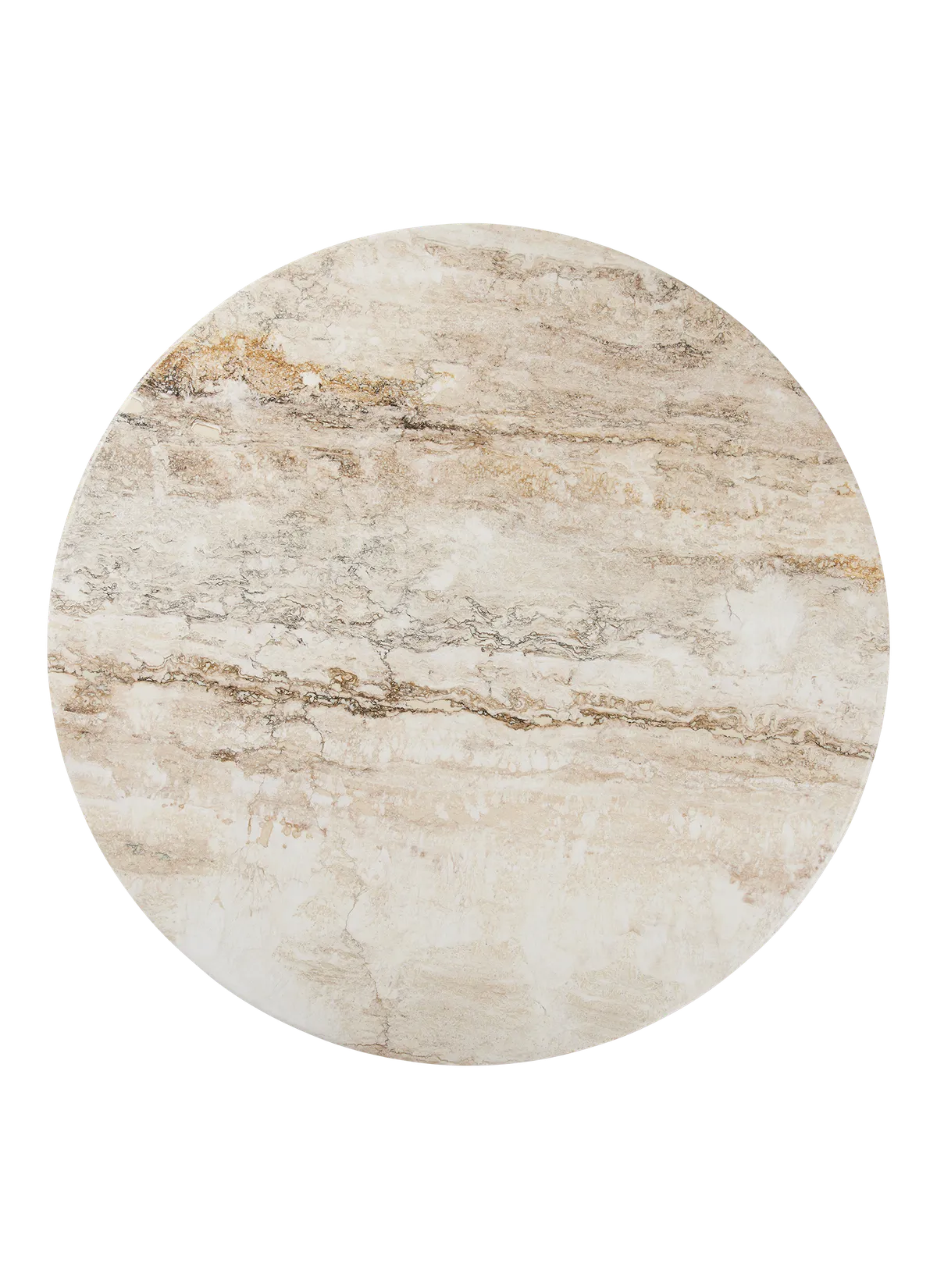 The IOI Coffee Tables by GamFratesi are a celebration of Italian materiality, featuring solid brass, steel, and now travertine. Drawing on geometric Art Deco references with a contemporary design language, the collection explores the empty space between the physical form as much as the form itself. Striking and unique, the IOI Collection takes its name from the structure of the table legs, each of which is formed from twin metal tubes linked by a sphere of brass the letters I-O-I rendered in physical form. Retaining this slender base, in black or chrome options, GUBI’s new edition introduces a new material and color to the circular tabletop travertine in Rippled Beige and refines its shape. The sides are rounded to create a U-shaped edge that arcs evenly on the top and bottom. At two different heights and diameters, the IOI Coffee Tables work well in pairs, groups and even clusters or alone as a single table alongside GUBI’s extensive range of lounge chairs and sofas.