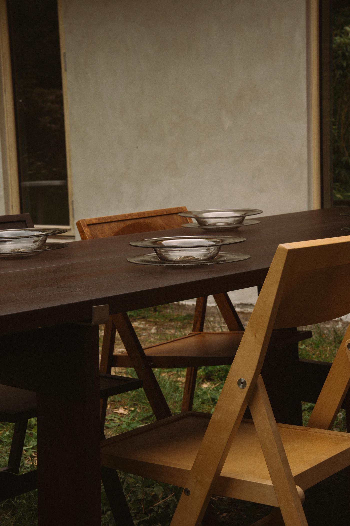 A new approach to unfussy plateware in a faintly smoky, bubbled hue that hints at its local production process—the series is designed with the quiet maker community of the island of Bornholm in mind, where each piece is handmade with recycled glass. The Isle Glass Shallow Bowl sits easily in the lip of the Isle Glass Plate, creating an uncomplicated match for setting the table to its fullest at a moment’s notice.