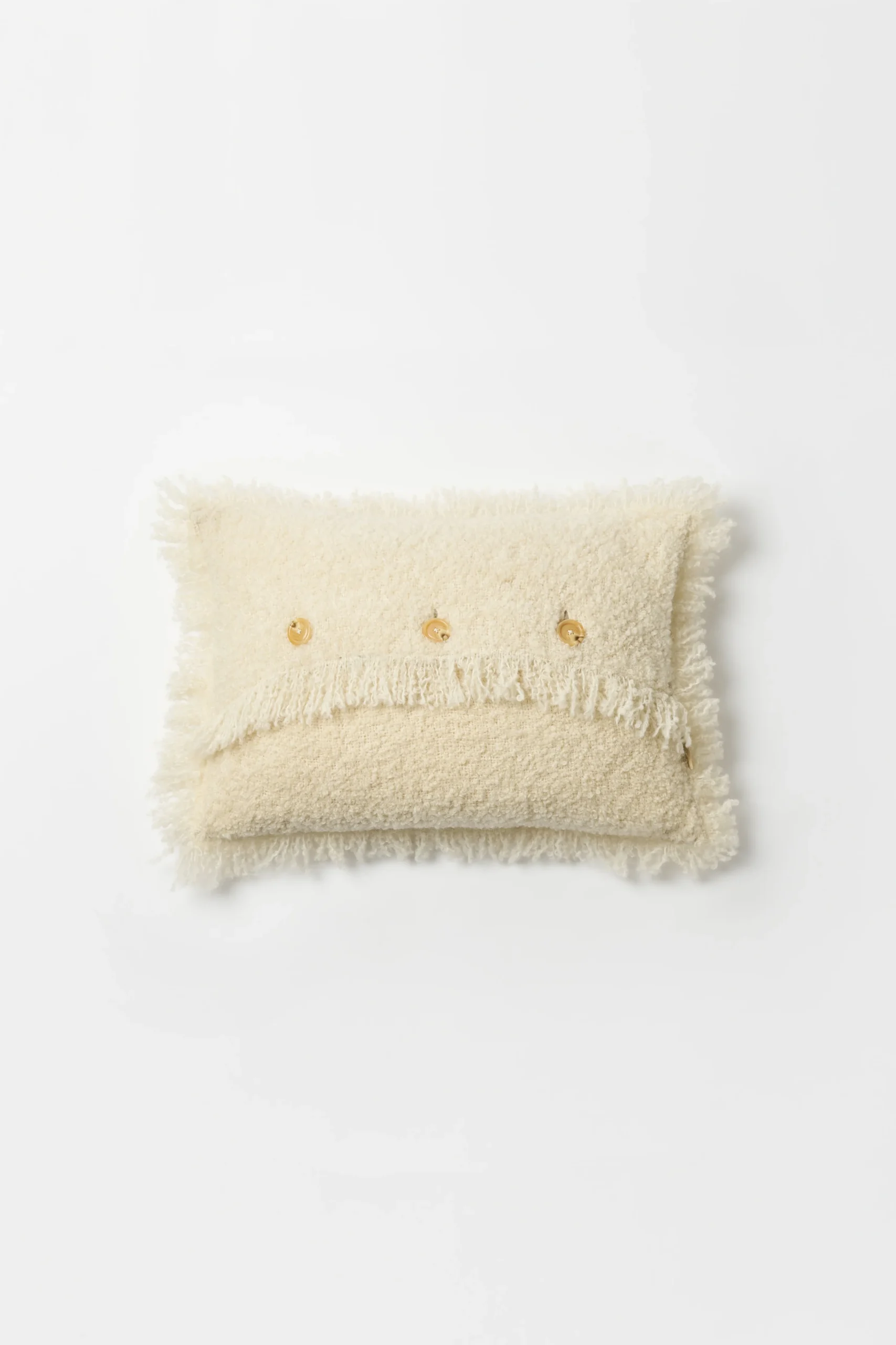 Crafted from the finest natural wool, our cushions feature short fringes around all edges, elegant backside buttons, and a recycled filling for a sustainable touch. With its soft texture and timeless design, it brings effortless bohemian charm to any space.
