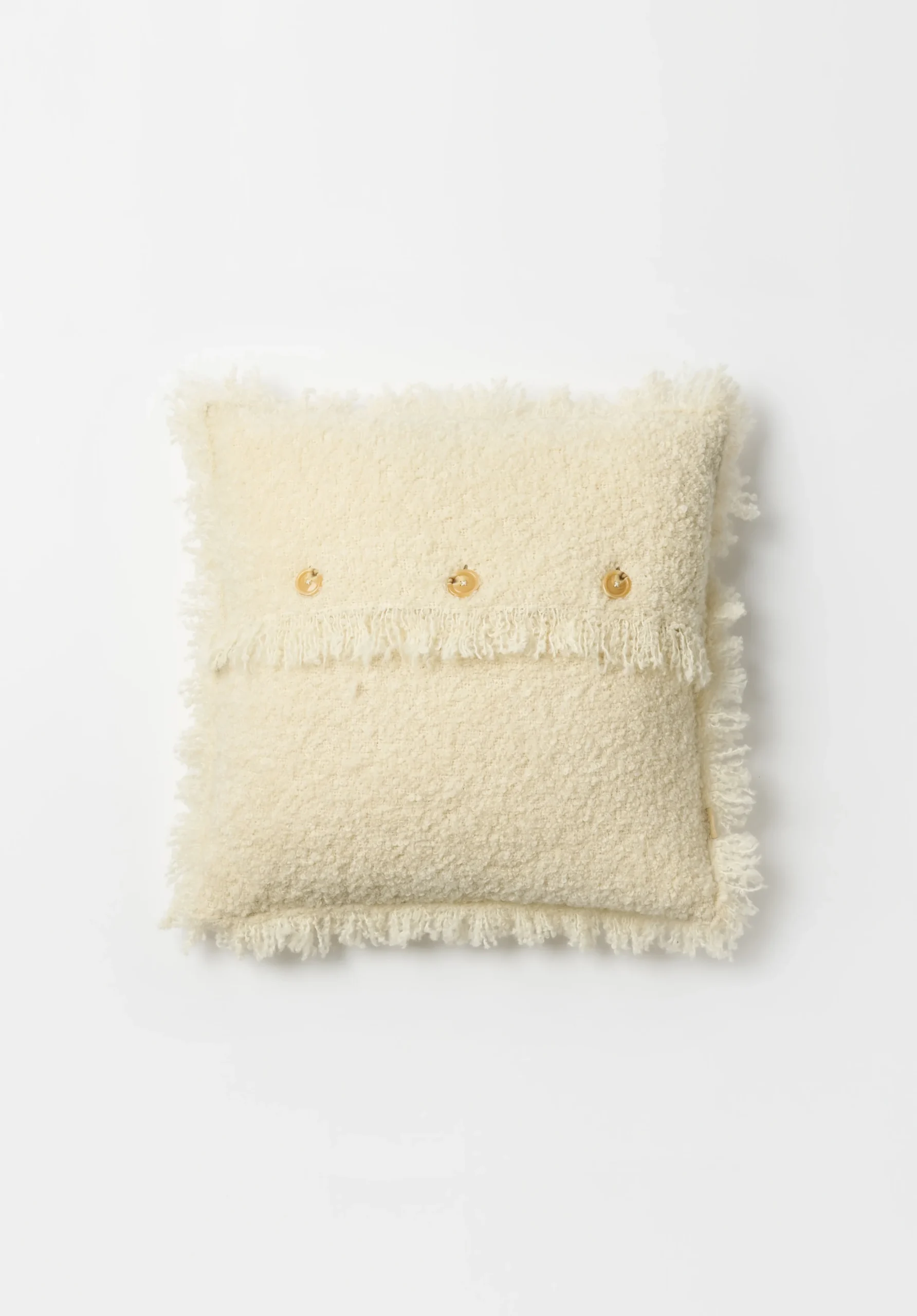 Crafted from the finest natural wool, our cushions feature short fringes around all edges, elegant backside buttons, and a recycled filling for a sustainable touch. With its soft texture and timeless design, it brings effortless bohemian charm to any space.