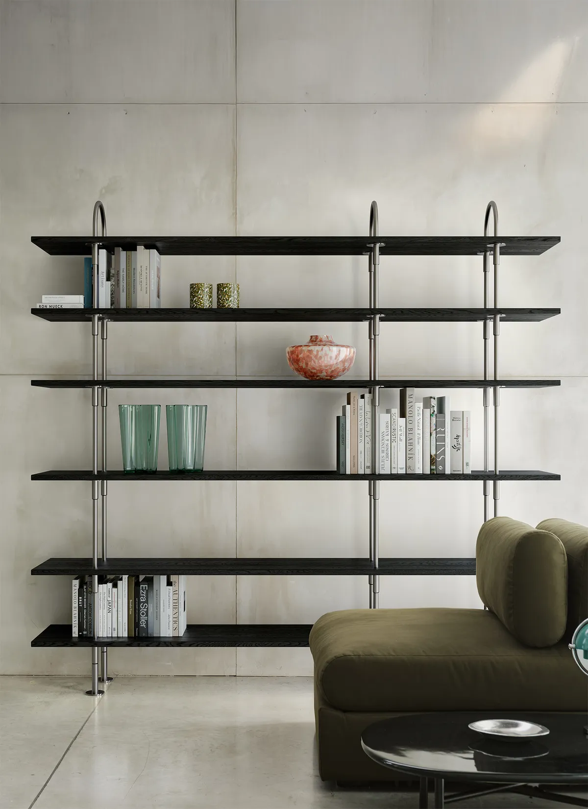 Created for GUBI by Linda Korndal’s studio, Toko Among Friends, Keen is a modular shelving system defined by architectural structure, expressive personality, and quiet adaptability. Designed to evolve with its user, Keen expands both vertically and laterally through an intuitive rod-and-bracket system that keeps the composition visually complete at every stage. With seven core modules, frame options in black brass or satin-polished stainless steel, and shelves in FSC-certified black-brown stained ash, FSC-certified ALPI Sottsass Gray veneer (FSC® C176589), or cool-gray stained glass, the system brings sculptural rhythm, material depth, and emotional resonance to homes, hospitality settings, and workspaces alike.