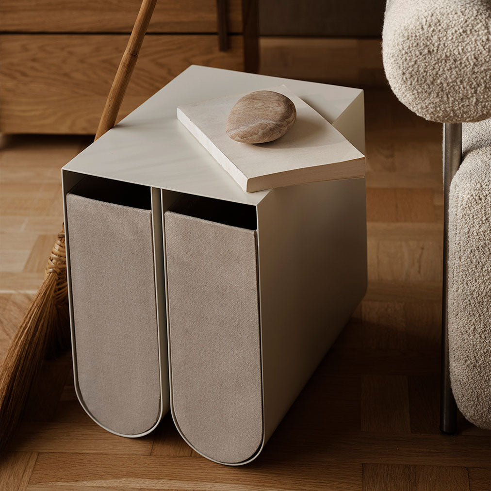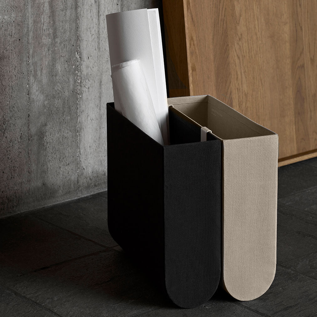 The Curved Boxes S are designed for the Curved Side Table to add an elegant storage solution to the furniture. The Boxes have a textile cover with references to an architect’s sketchbooks. They are available in natural hues that suit well with the colour of the Curved Side Table.