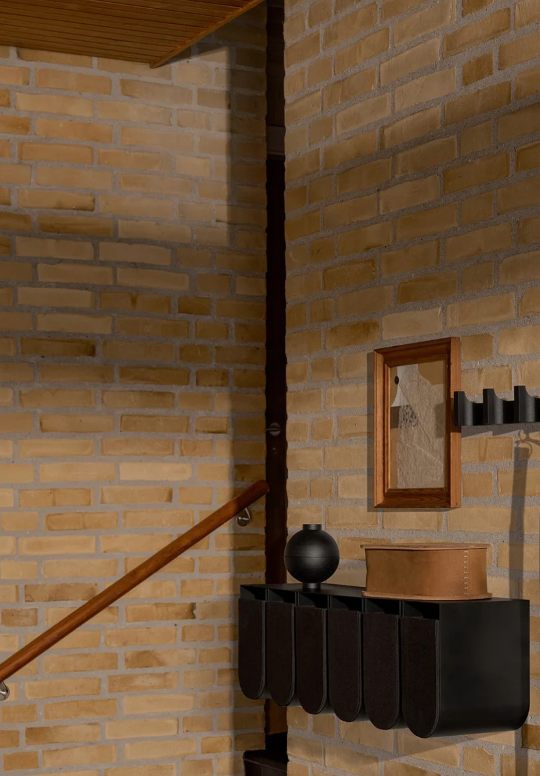 The Curved Boxes are designed for the Curved Wall Shelf to add an elegant storage solution to the furniture. The Curved Boxes have a textile cover with references to an architect’s sketchbooks and are available in natural hues that work well with the existing colours of the Curved Wall Shelf.