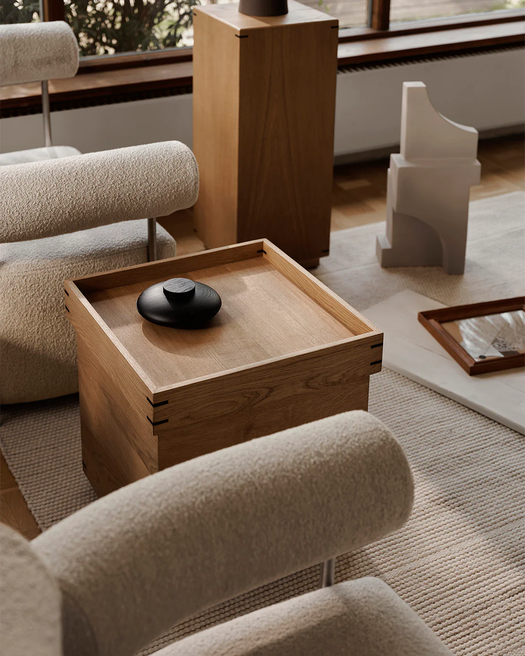 Inspired by the Japanese design tradition and the incense boxes of the Edo era, Kristina Dam Studio has envisioned a Scandinavian take on the versatile tray tables. Three sizes, multiple functions, one clean look. All trays and tables are handcrafted in warm oiled oak. Perfect in the living room as coffee tables. Store your favourite magazines or warm blanket within. It is a multifunctional piece you truly set your heart on.