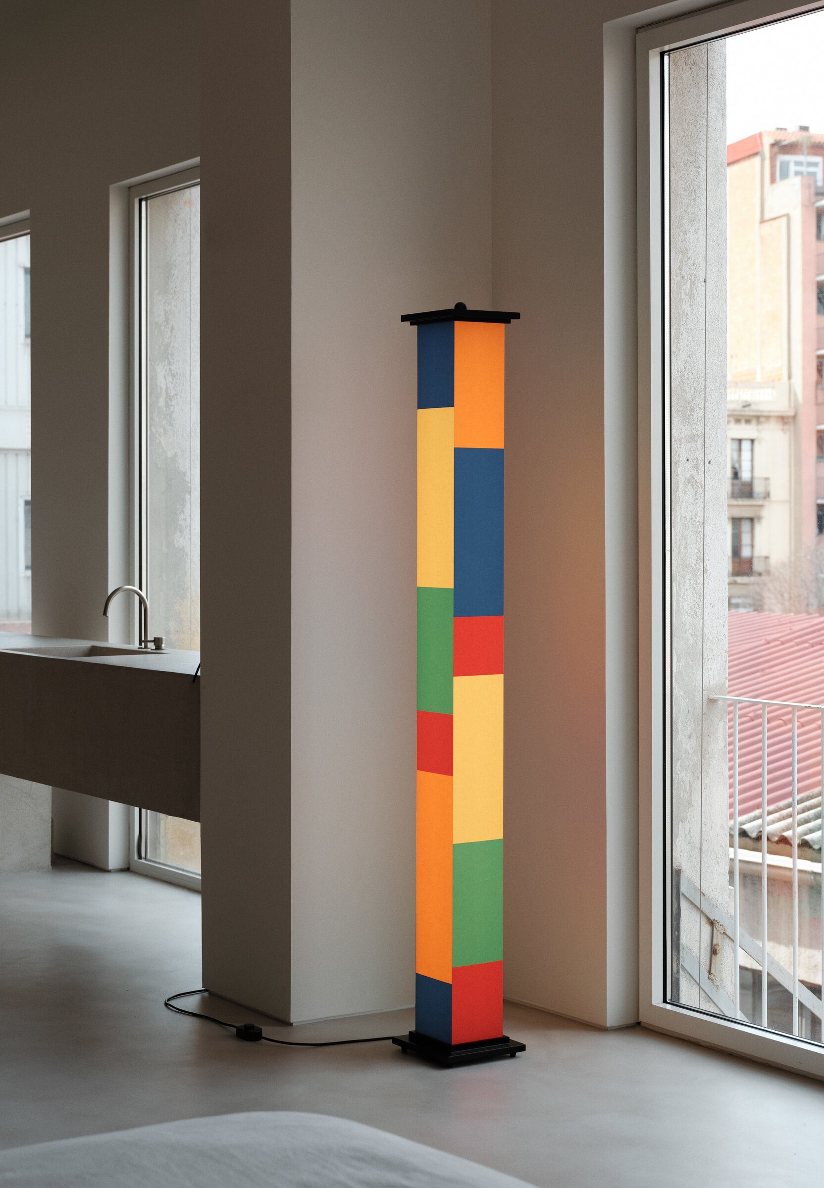 Designed by Santa & Cole co-founders Gabriel Ordeig Cole and Nina Masó, La Bella Durmiente (Sleeping Beauty) is a totemic volume that explores the expressive potential of color, playing with contrasts between warm and cold hues. The result is a visually dynamic and balanced composition. Contemplation and imagination. A sequence that nods to the geometric abstraction of Piet Mondrian or Theo van Doesburg.