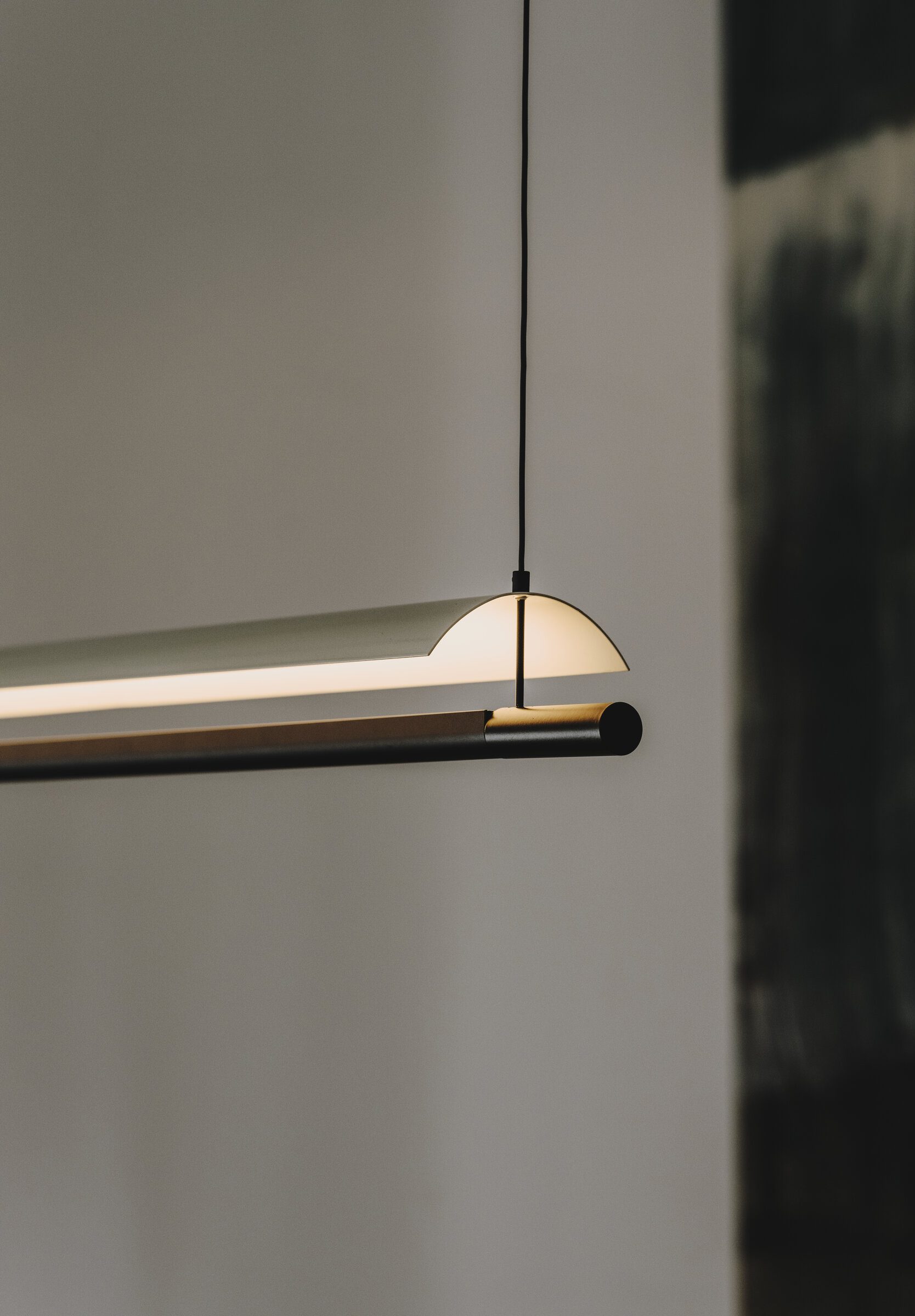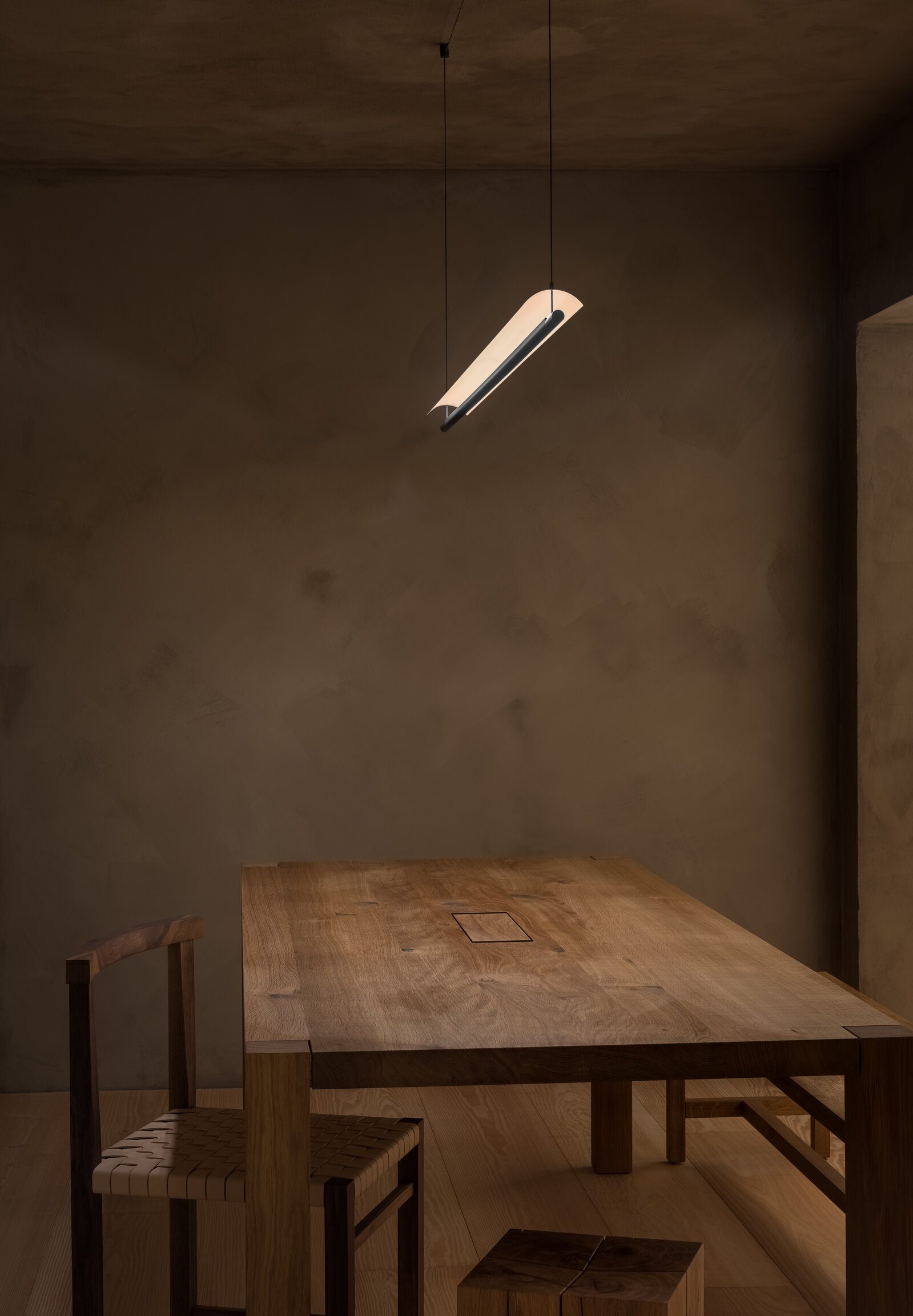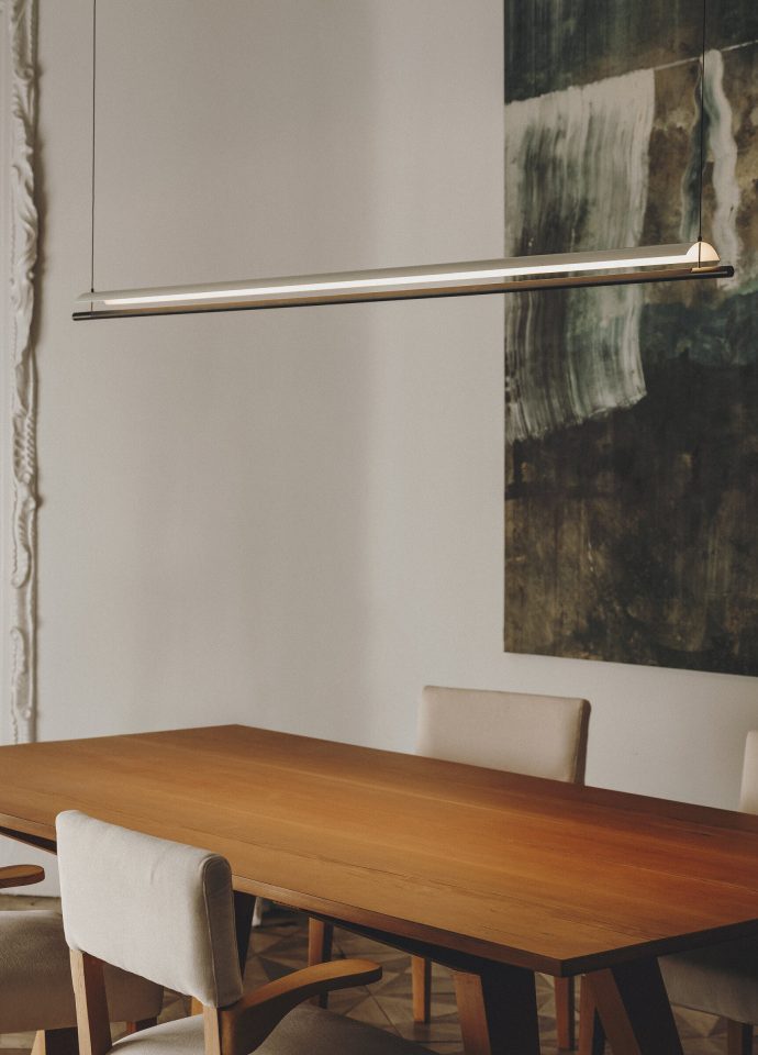 A stroke of light beneath a thin white sheet, in subtle yet effective lightness. Lámina 165 is the longest and narrowest version of this family that celebrates the virtues of reflected light. Its proportions are just right for placement above a table, a reception desk, or any work surface that calls for clarity.