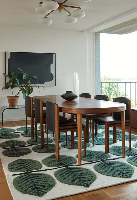 Stig Lindberg x Layered is a collection filled of nostalgia, playfulness and an important piece of design history under your feet. Stig Lindberg x Layered collection is the result of a common love for bold patterns and clean lines. The collection consists of the popular patterns Berså and Trellis, in two colourways each, created in 100% New Zealand wool in a hand knotted technique. The Gunnel pattern is a tribute to the weaved rug Stig’s wife Gunnel designed but never taken into production. The flat weave generates a structured baseline of the rug, accompanied by a tufted shaggy detail in the formation of hand-spun yarn. The distinction of the high/low pile creates a dynamic finish that complements Stig’s signature designs.