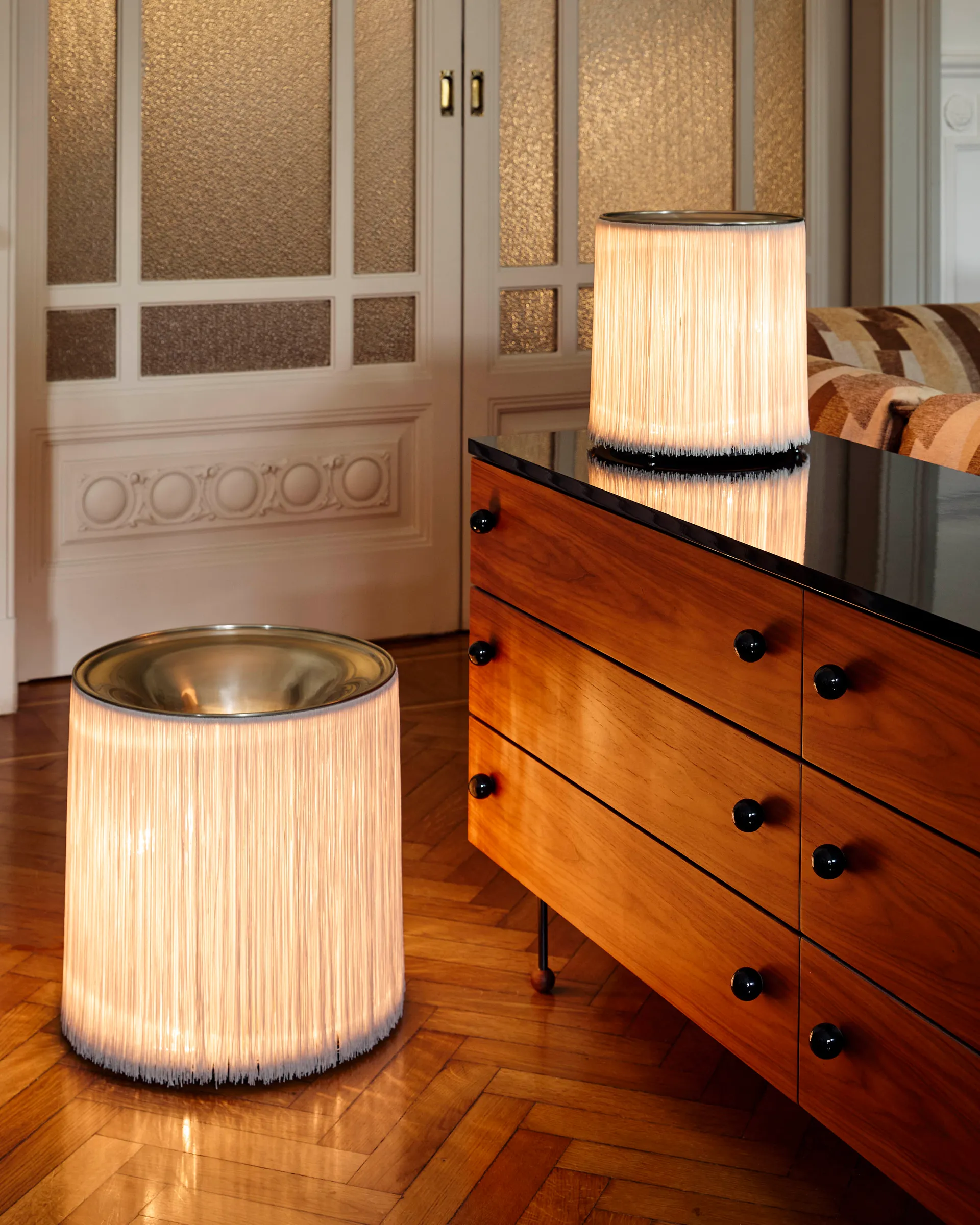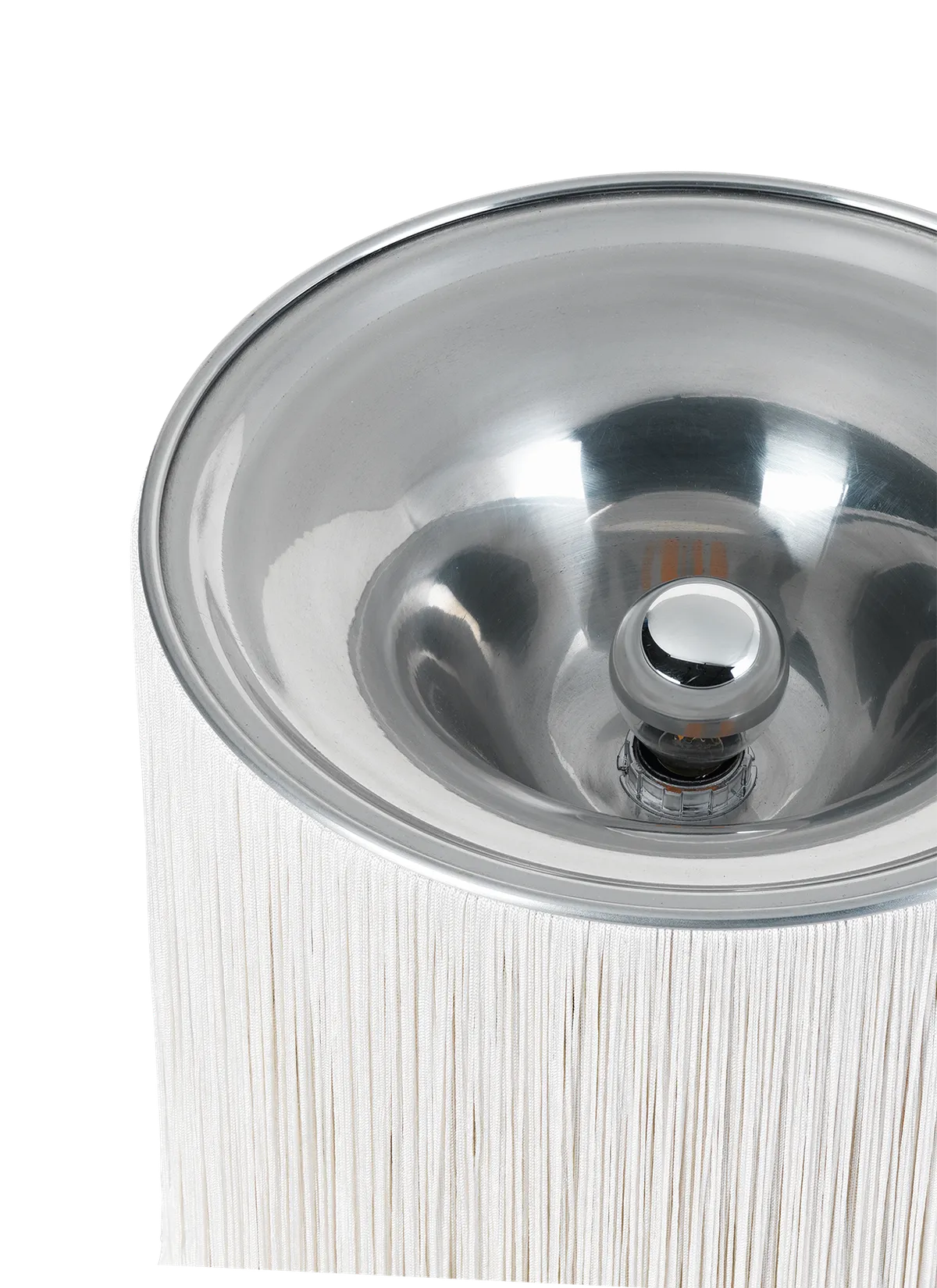 First released in 1961, the Model 597 by Italian virtuoso Gianfranco Frattini is the lamp that launched him as a lighting designer. Its unique and playful form perfectly encapsulates Frattini’s extraordinary approach to the aesthetics of light. Model 597’s unique nylon fringes were inspired by both the world of fashion and the fringed entrance curtains commonly found in Italy’s bars and grocery stores in the late 1950s. Thanks to the array of lateral bulbs, the Table Lamps emit a 360o play of indirect light, softened by the fringes to create a rich ambient glow, while the reflective aluminum cover adds warmth to the uplight.Model 597 is light-hearted in expression, but serious about functionality – bringing sophistication, fun and character to interiors without resorting to superfluous decorative flourishes.