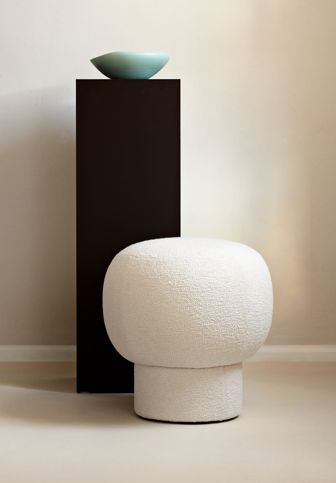 The Liège Pouf, light and soft to the touch, is crafted in the distinctive shape of a Champagne cork. Available in various upholstery options, it introduces a quietly neutral or boldly colorful focal point to any space, depending on how it’s dressed