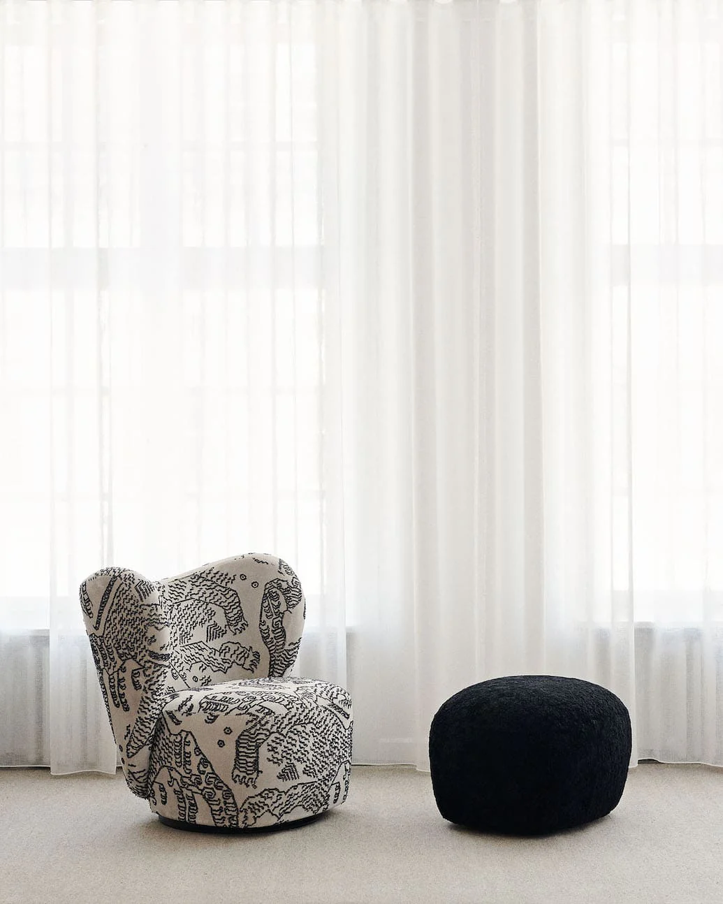 Little Big Pouf was launched by Norr11 to complete the Big collection created in 2020 by designers Kristian Sofus Hansen and Tommy Hyldahl.Proportioned to be placed alongside Little Big Armchair and Big Big Armchair, it is a perfect addition to the relaxation area of your home. Versatile and compact, it can also be used as an additional seat or footrest, a must for home comfort. The Little Big pouf is produced entirely in Italy with quality materials and selected upholstery. The organic and soft line can soften the straight and angular lines of essential or contemporary furnishings or blend perfectly with warmer or more classic settings. Pouf available in 4 different coverings: 3 colours of Barnum Bouclè and one shade of Sheepskin. Plywood frame and foam padding. Do not expose to direct sunlight.