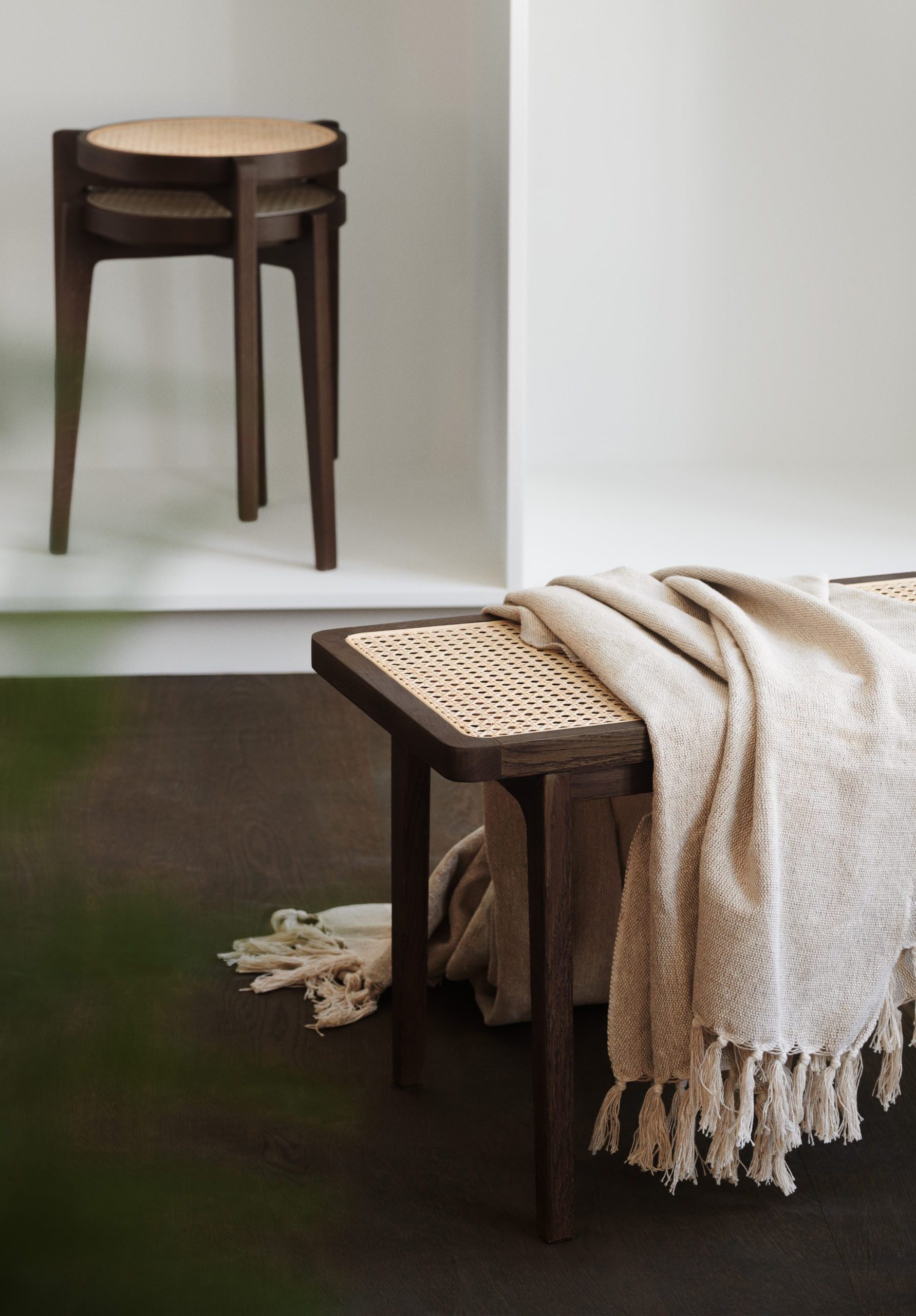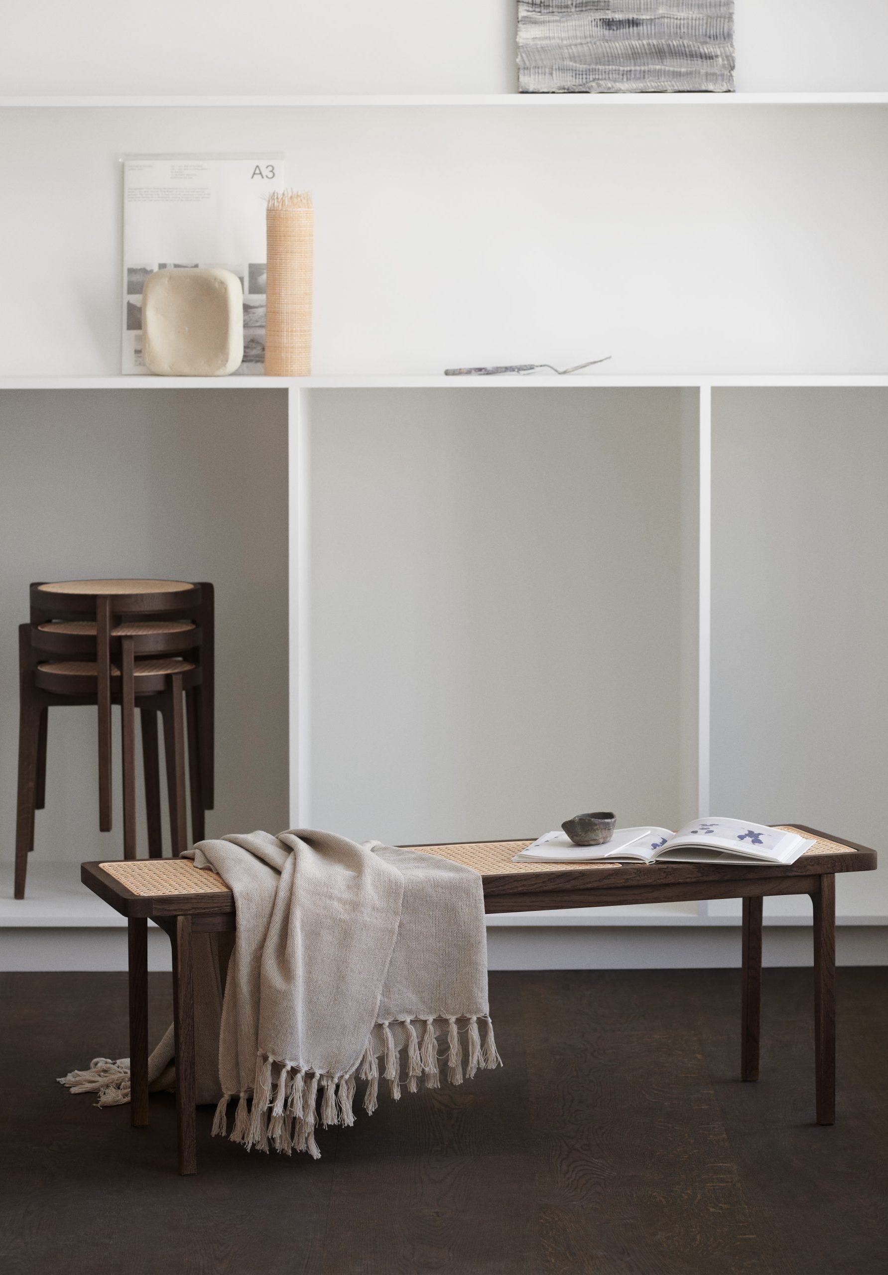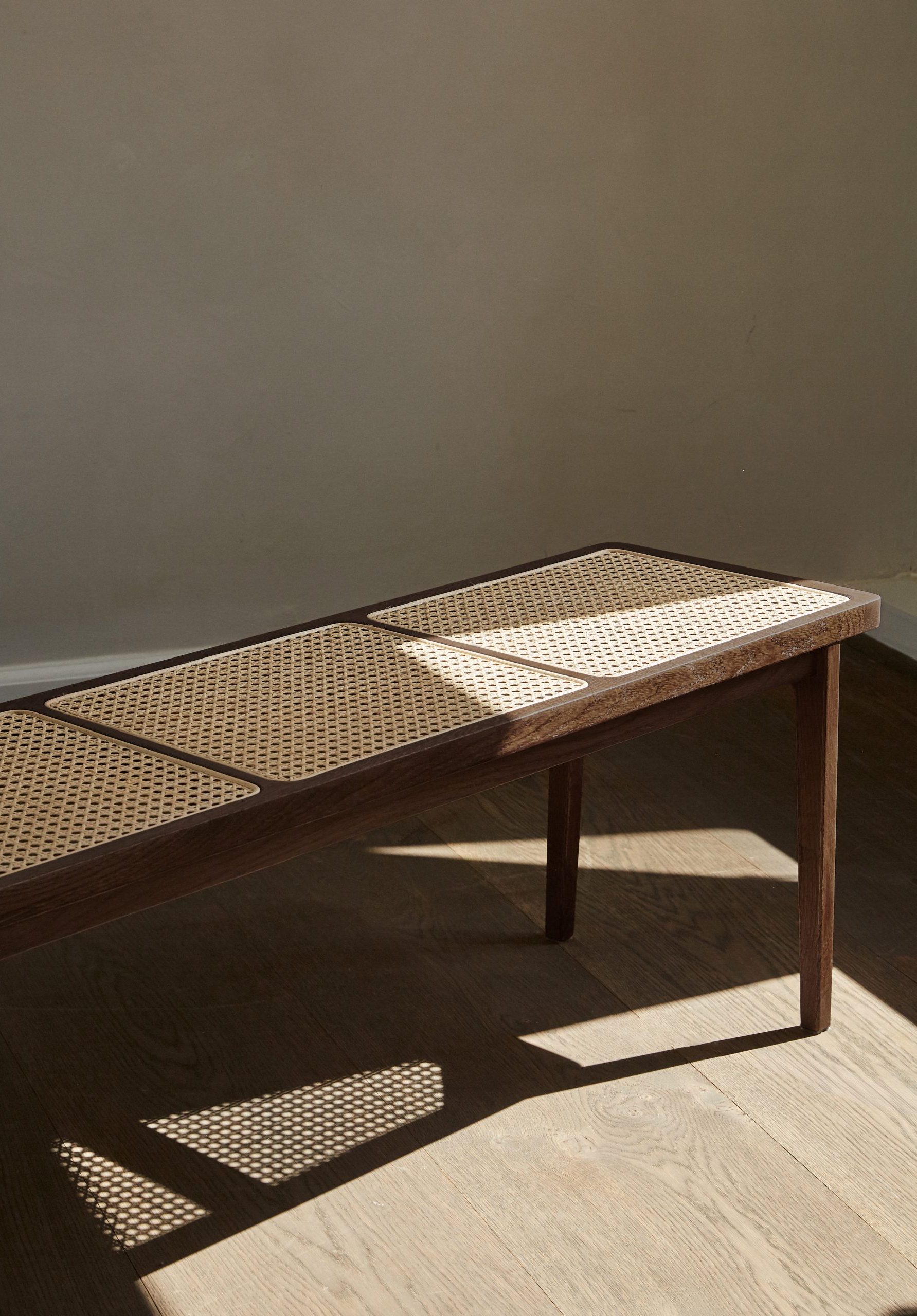 Named after the French word for “King”, Le Roi Bench is made of solid ash with inlaid natural rattan. It works equally well as a coffee table in a living room or a bench in an entryway or bedroom.