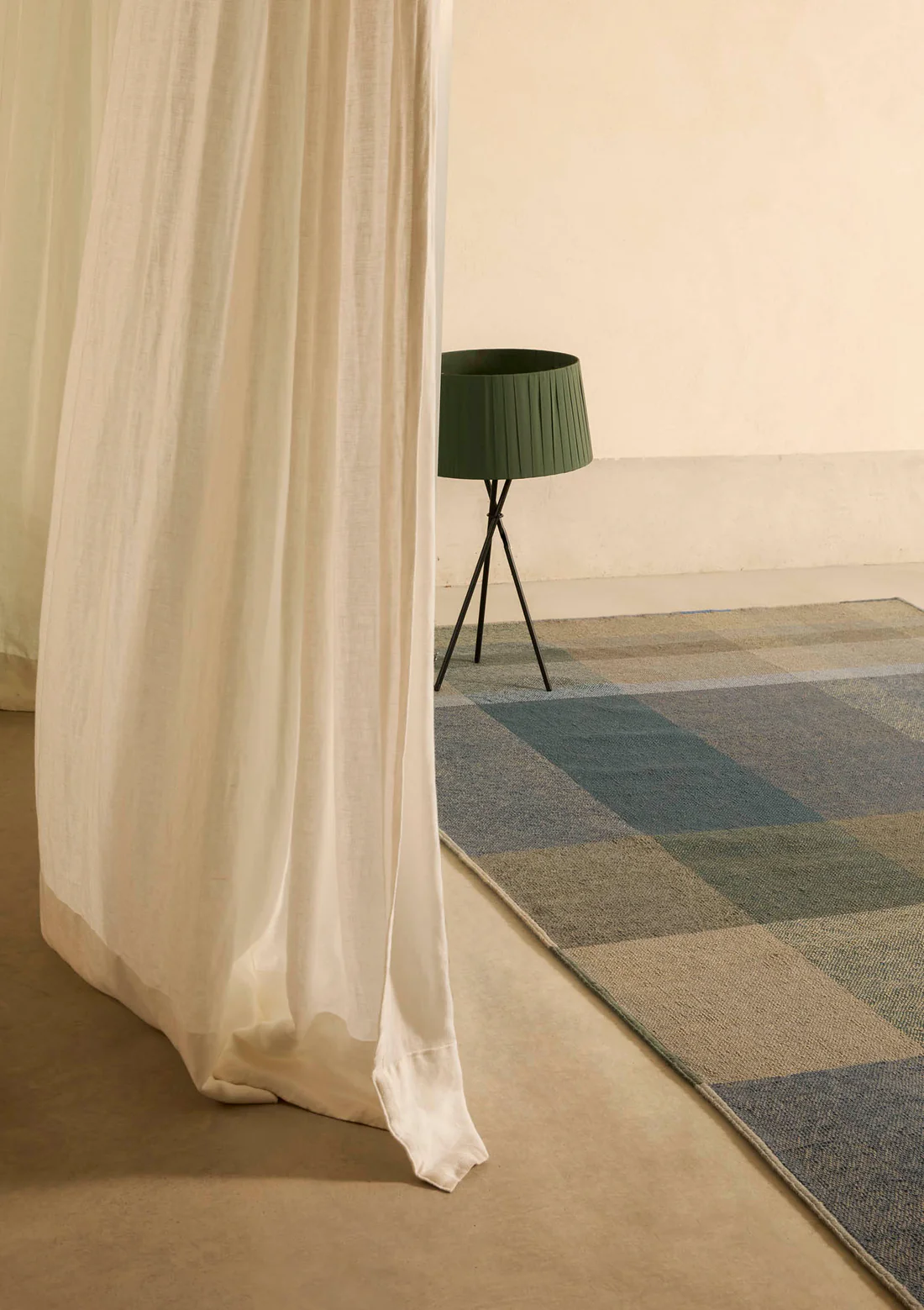 This collection presents a unique visual proposal, where a pattern of parallel and intersecting lines appears and disappears within the same color scale. The result is a monochromatic design, yet with a depth and texture that evoke a contemporary tartan. Through the subtle interaction between colors and fiber structure, the collection achieves a dynamic graphic effect that changes depending on the light and perspective.