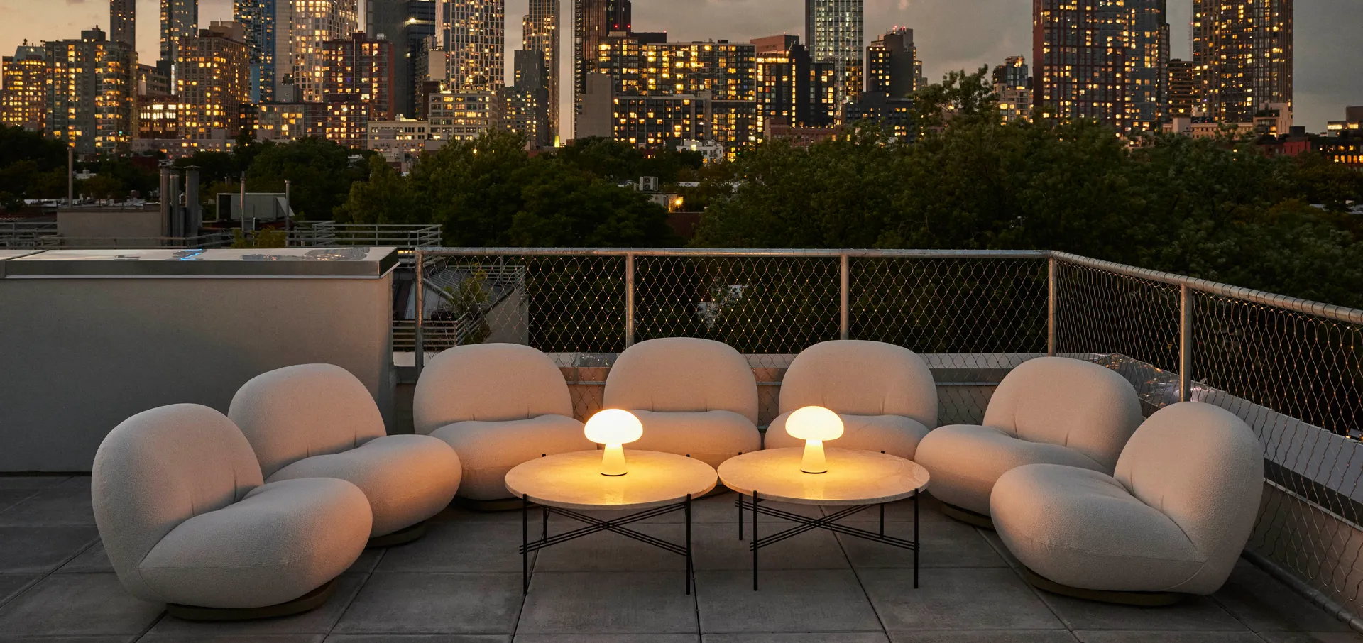With a frosted, mouth-blown glass shade, as used for Curry’s original lamps, and integrated dimmable-LED light source, the rechargeable lamp can easily be moved between inside and out. With a complete charge in four and a half hours, providing up to 40 hours of light at 10% brightness, 12 hours at 40% and 5 hours at 100%, Obello will create a cozy atmosphere as the sun starts to set and last well into the night. The Obello Lamp is an iconic space-age design that will make a strong statement, either as a playful centerpiece or a point of curiosity within any outdoor space.